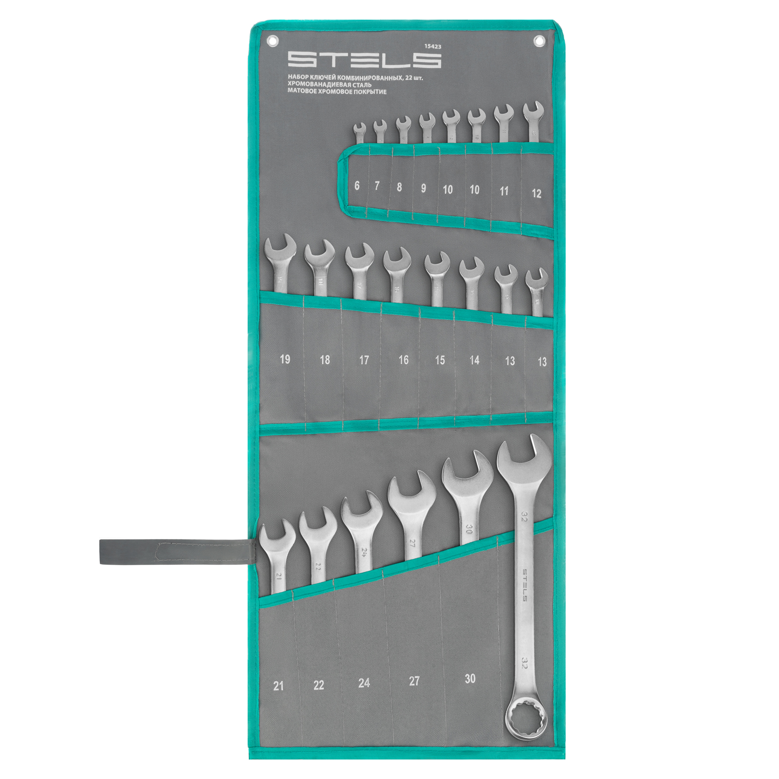 Набор ключей комбинированных 6-32 мм, 22 шт, CrV, матовый хром Stels в Воронеже