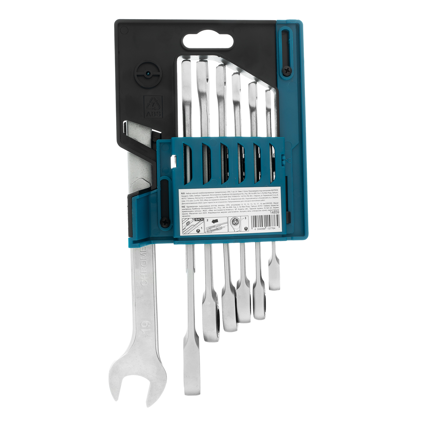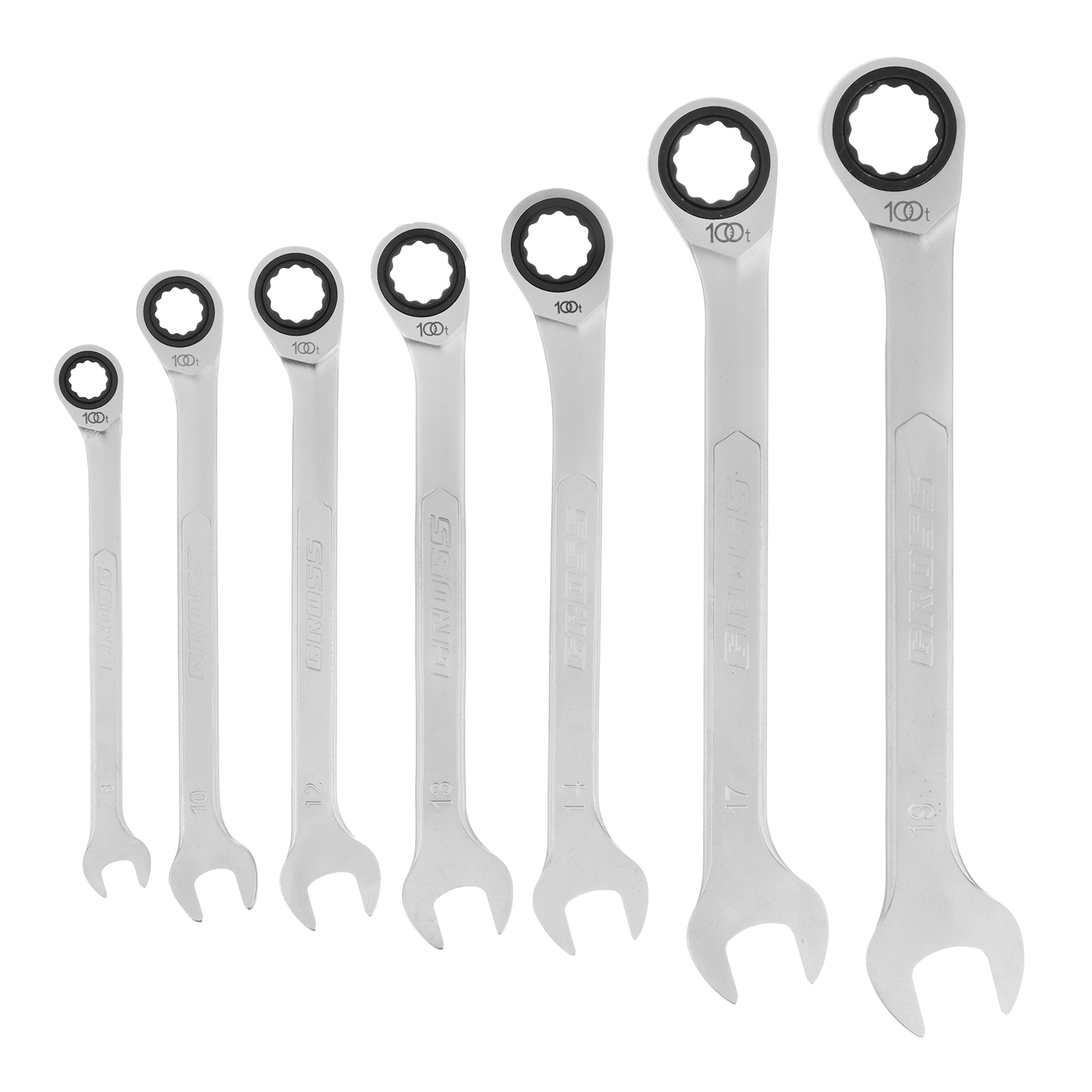 Набор ключей комбинированных трещоточных, количество зубьев 100, СRV, 7 шт, 8-19 мм Gross в Воронеже