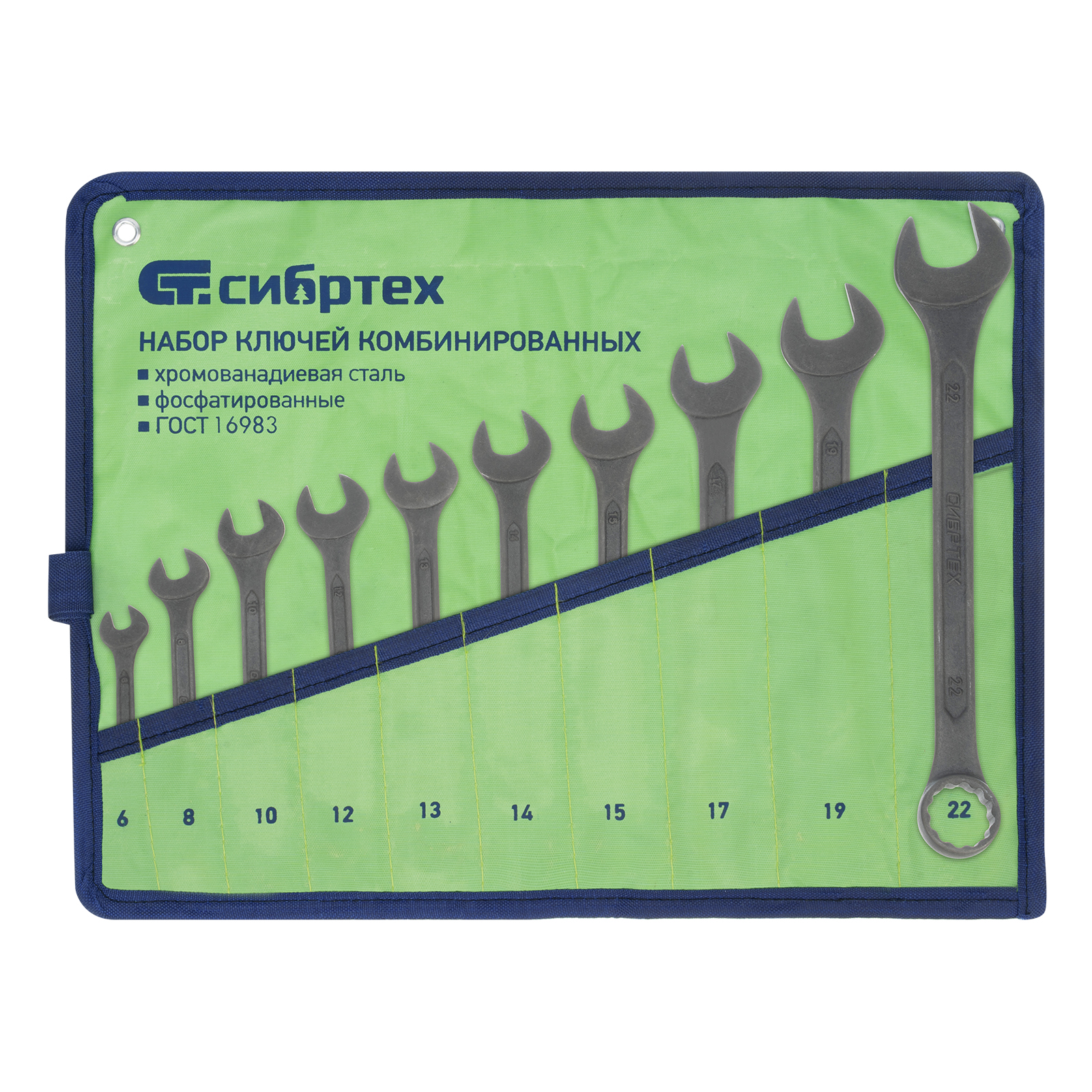 Набор ключей комбинированных, 6 - 22 мм, 10 шт., CrV, фосфатированные Сибртех в Воронеже