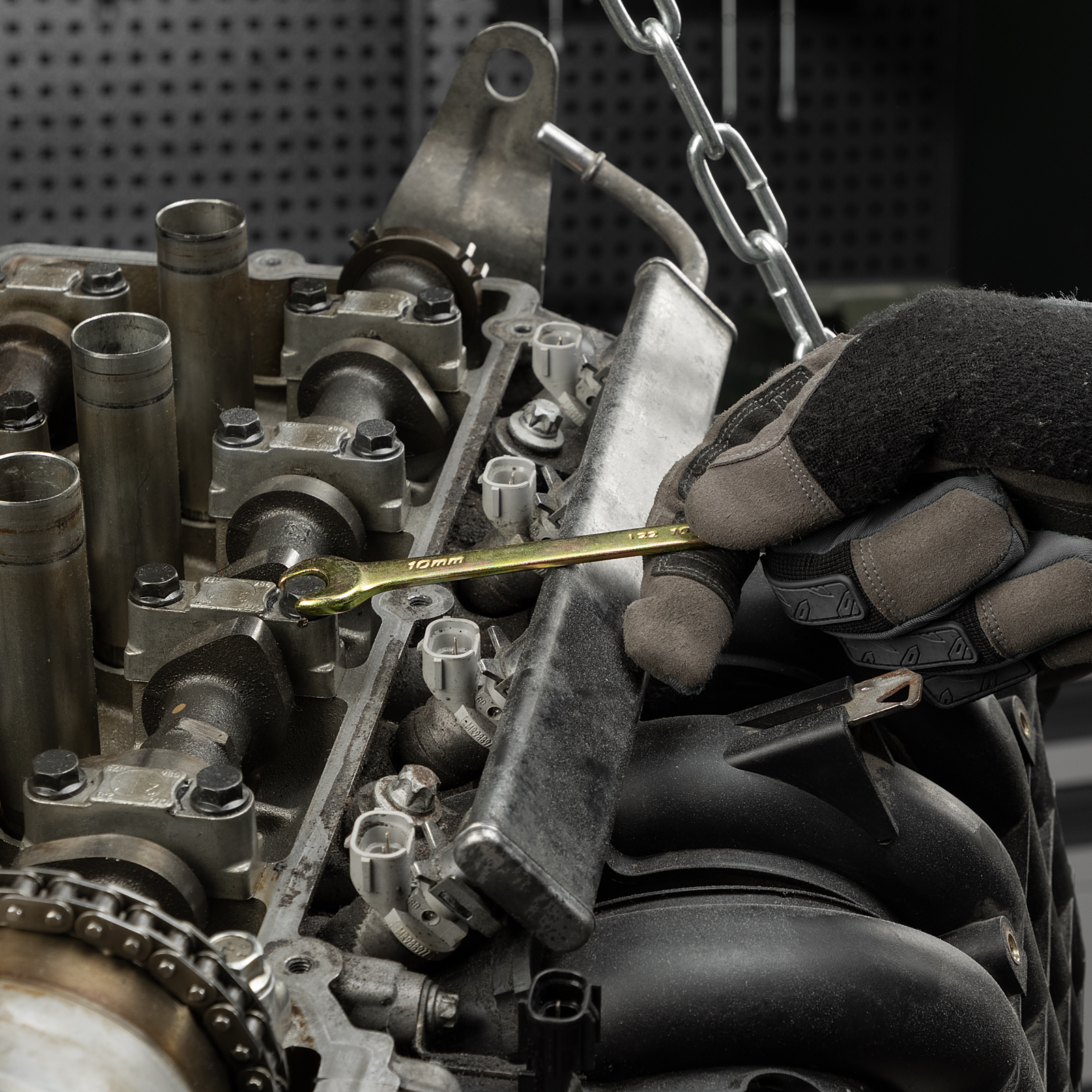 - Комфортная работа в труднодоступных местах — накидные головки расположены под углом 15° к плоскости ключей.