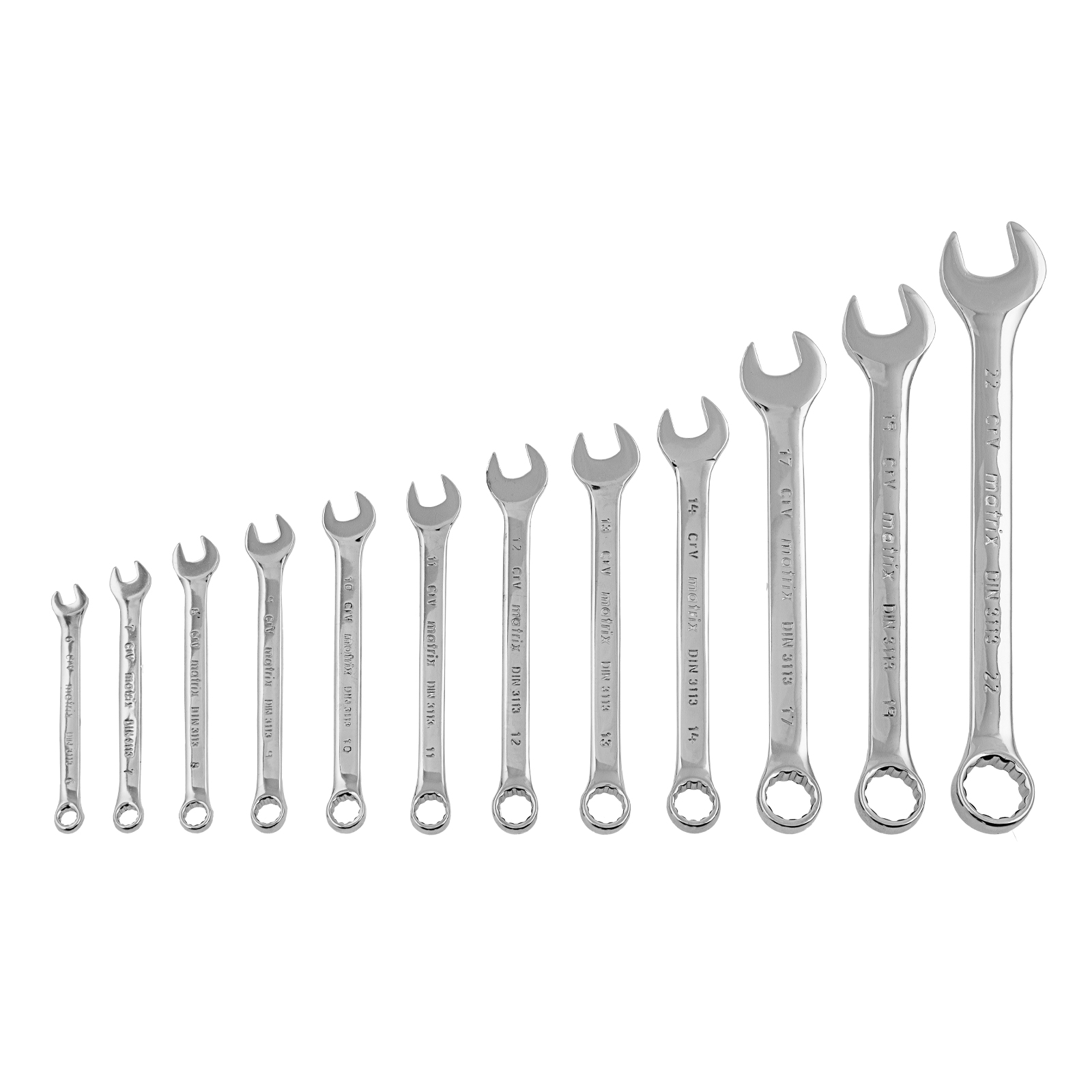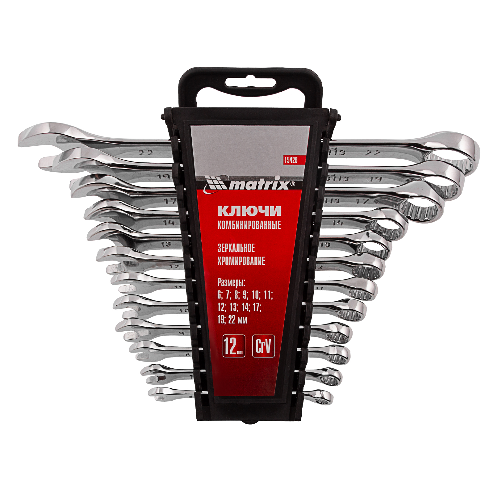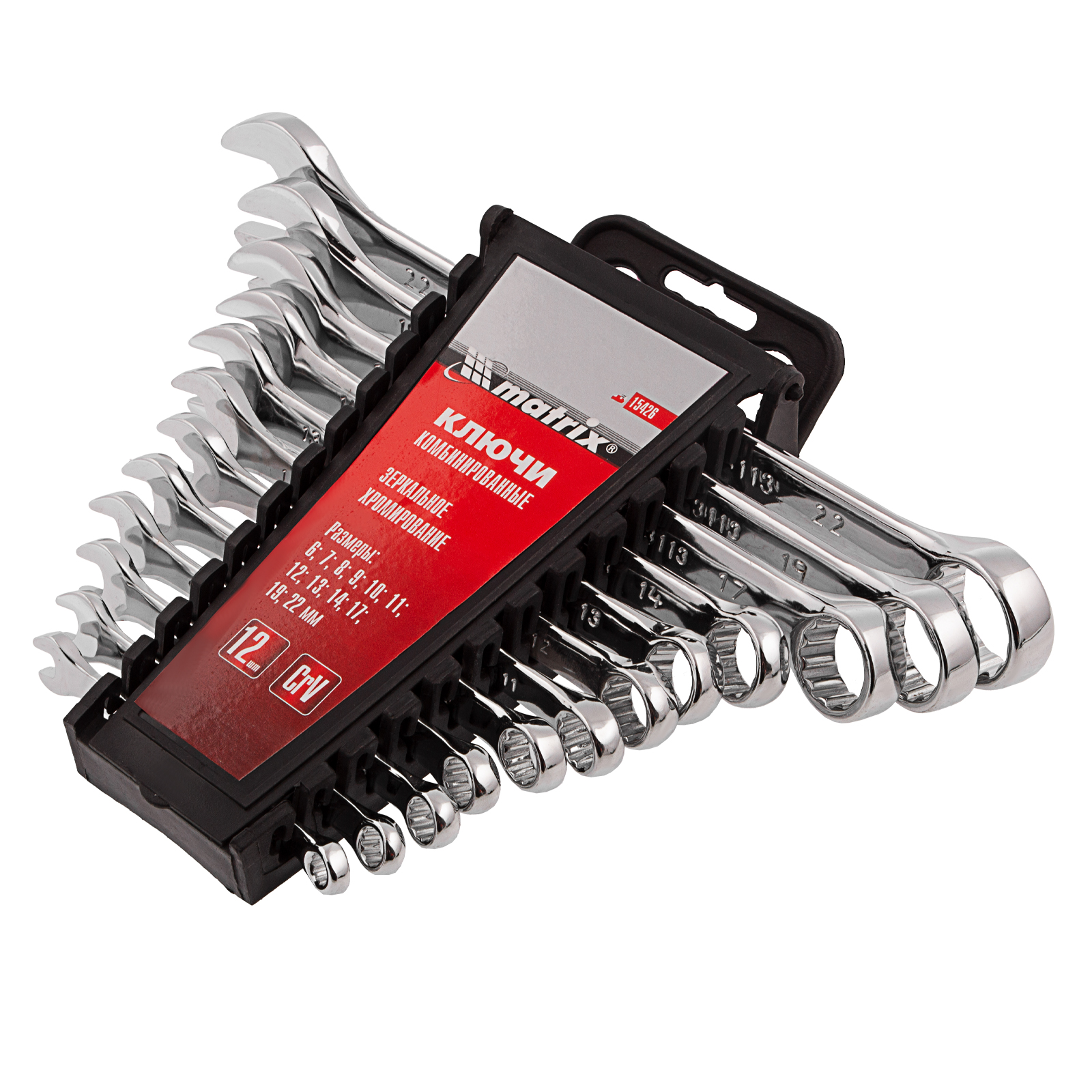 Набор ключей комбинированных, 6-22 мм, 12 шт, CrV, полированный хром Matrix в Воронеже