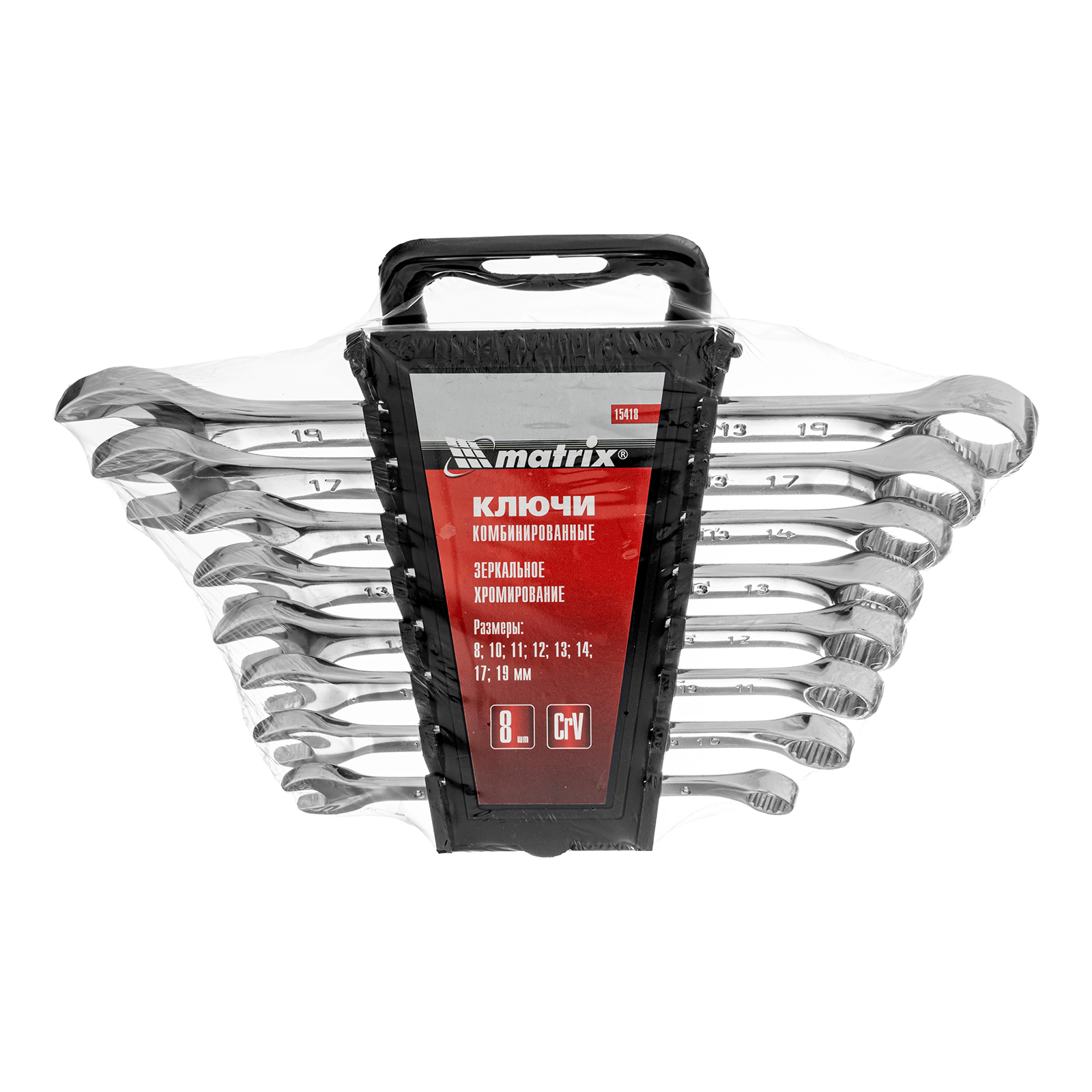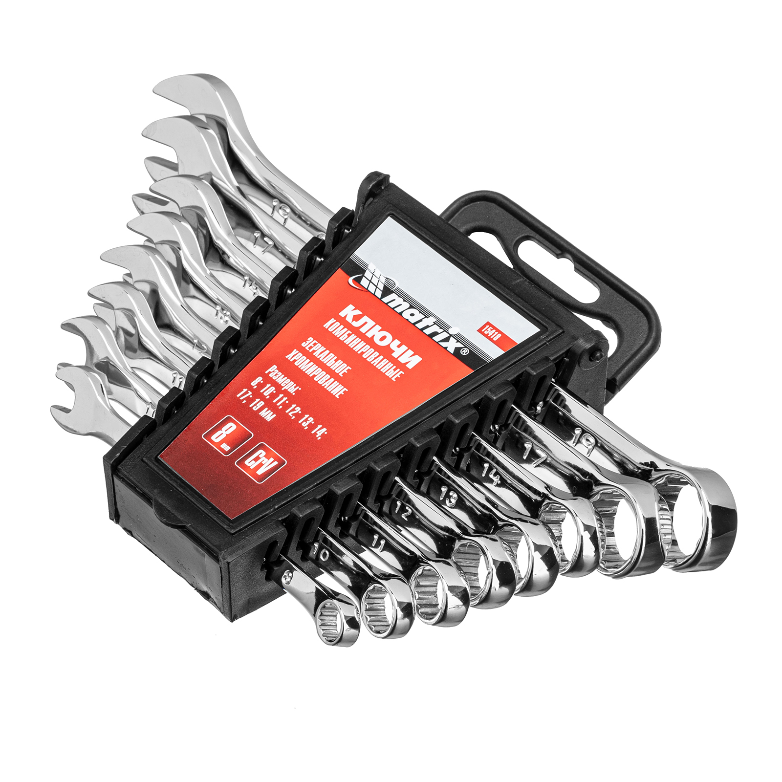 Набор ключей комбинированных, 8-19 мм, 8 шт, CrV, полированный хром Matrix в Воронеже