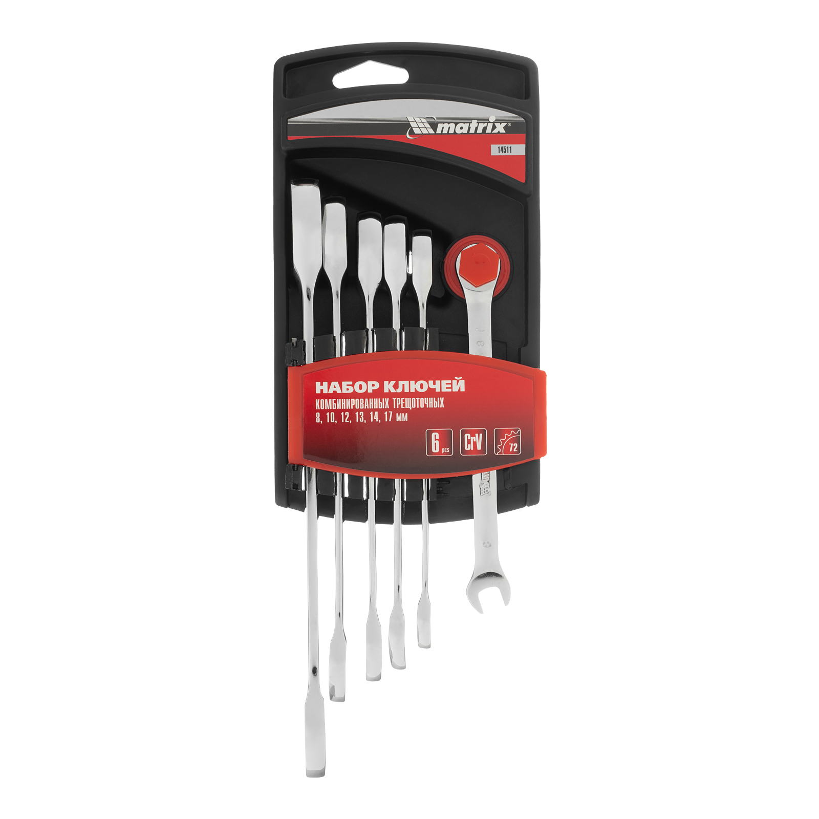 Набор ключей комбинированных, трещеточных - 6 шт, типоразмеры - 8, 10, 12, 13, 14, 17 |