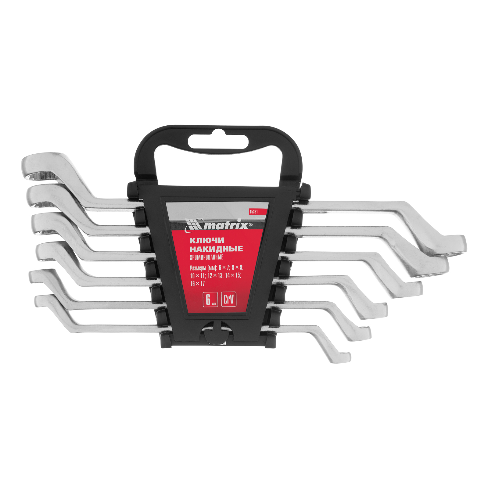 Набор ключей накидных, 6-17 мм, CR-V, 6 шт, полированный хром Matrix в Воронеже