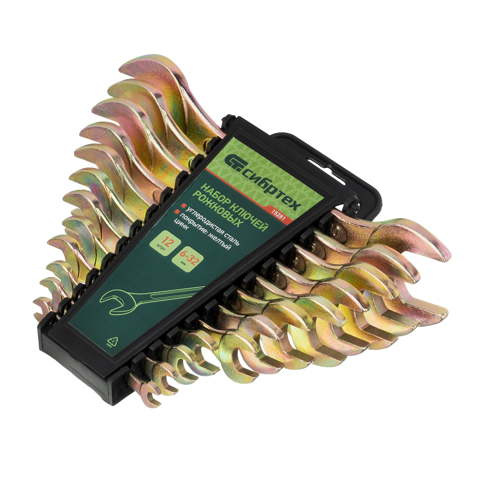 Набор ключей рожковых 6-32 мм, 12 шт, желтый цинк Сибртех в Воронеже