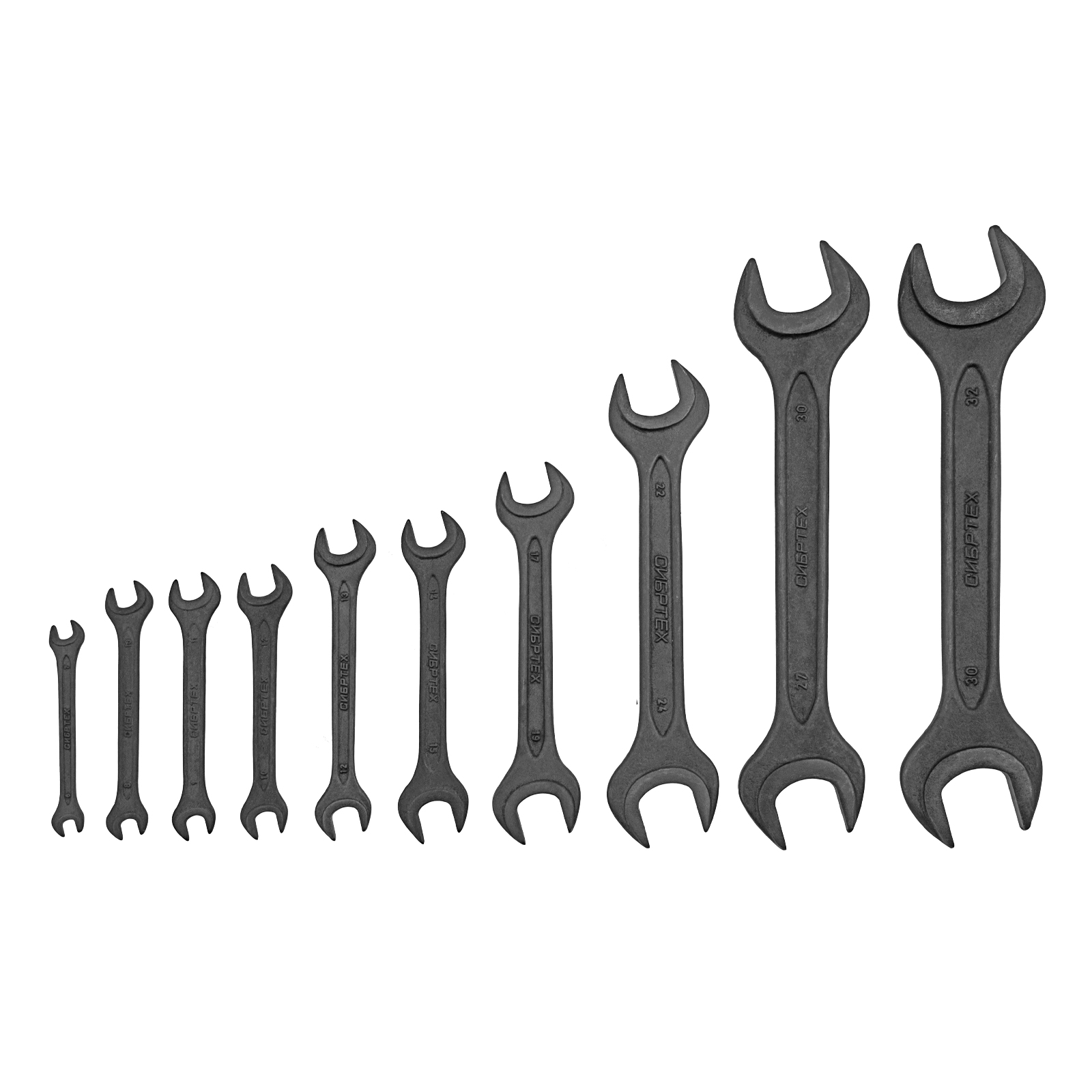 Набор ключей рожковых, 6 - 32 мм, 10 шт., CrV, фосфатированные Сибртех в Воронеже