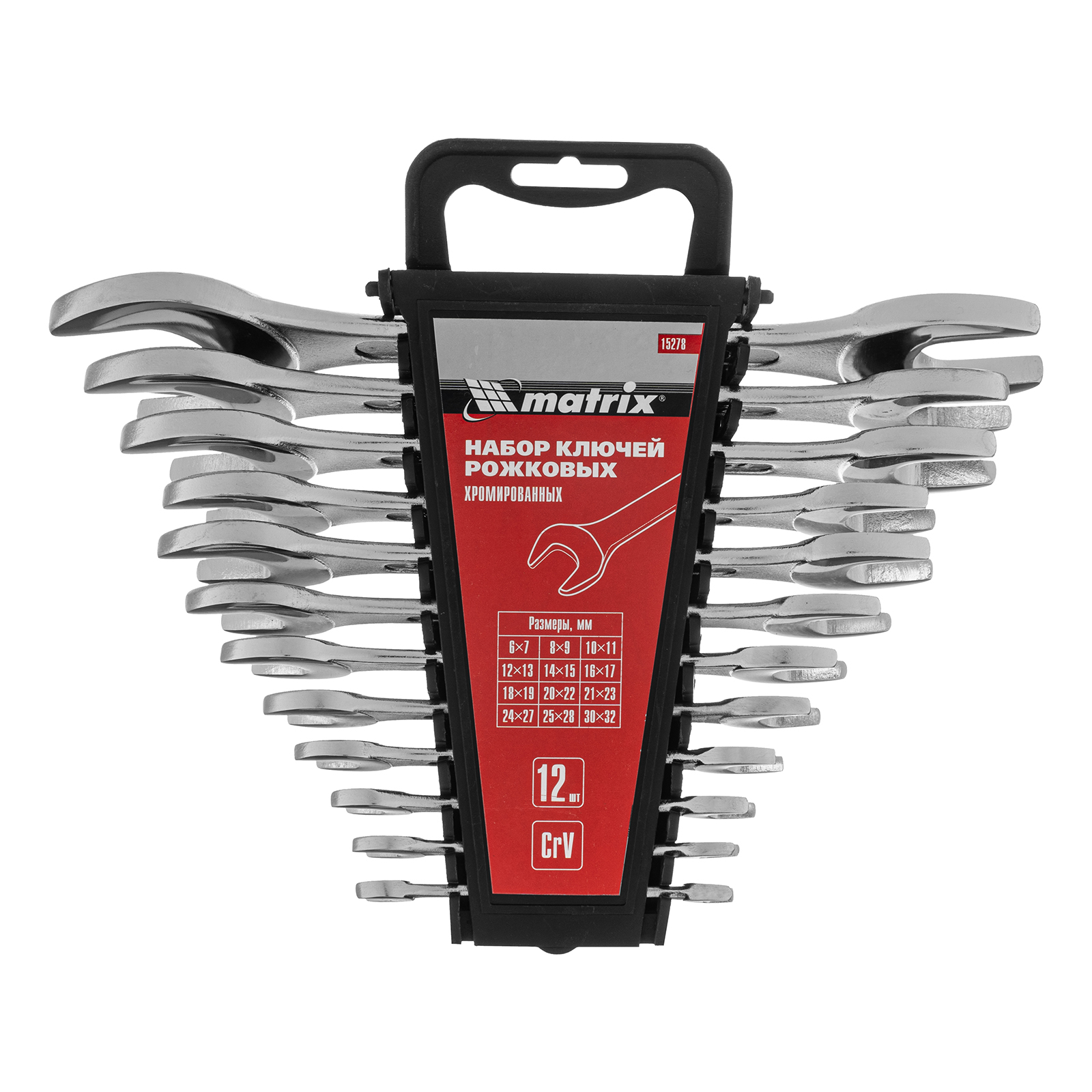 Набор ключей рожковых, 6 х 32 мм, 12 шт., CrV, хромированные Matrix в Воронеже