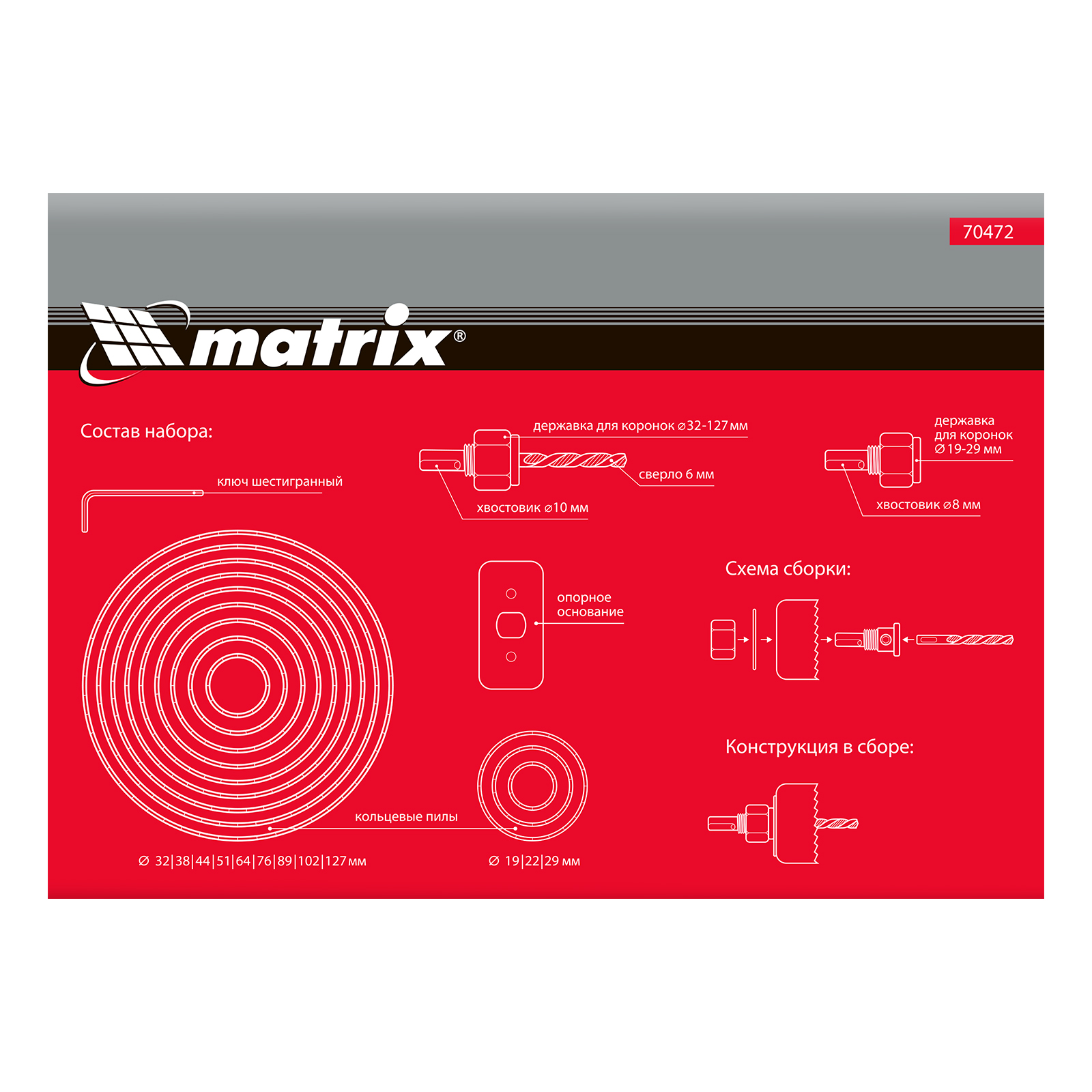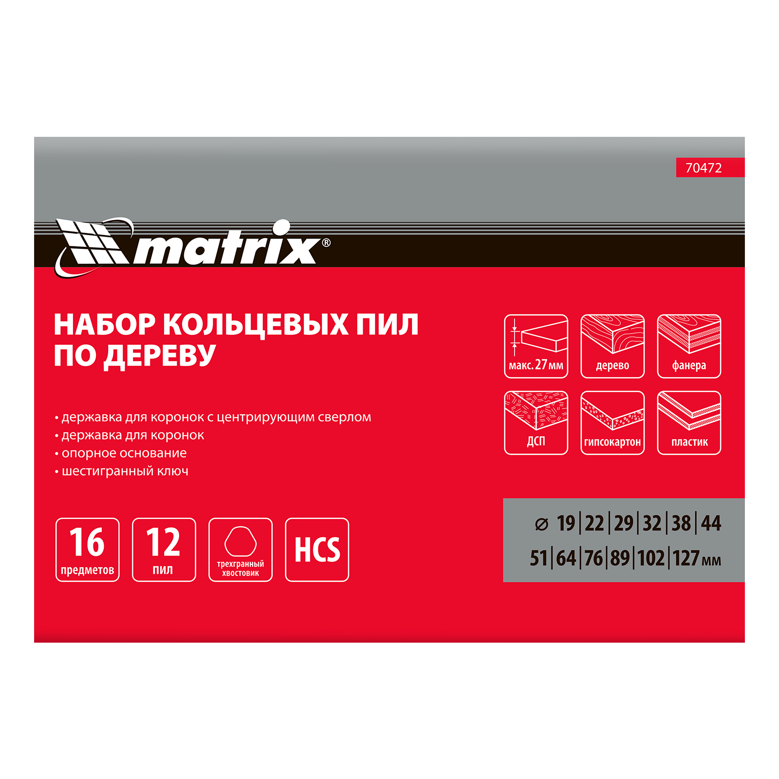 Набор кольцевых пил по дереву, 19-127 мм, 12 предметов Matrix в Воронеже