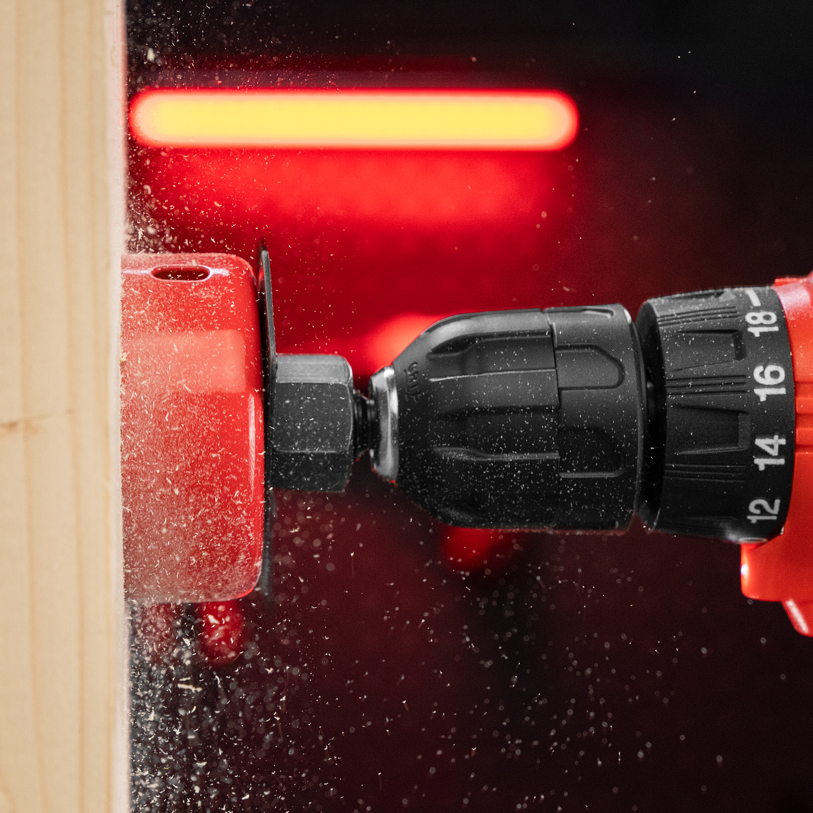 - Быстрый и чистый рез — опорное основание исключает проворот коронки во время сверления.
