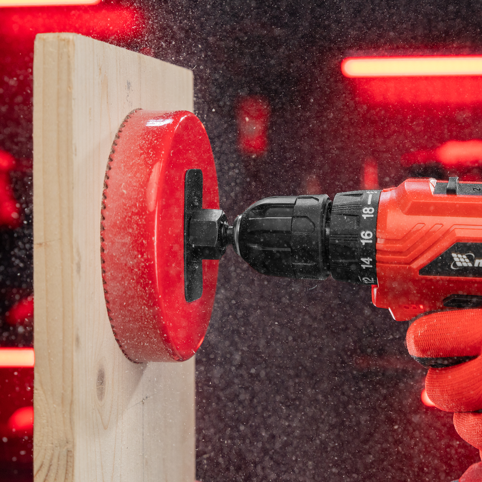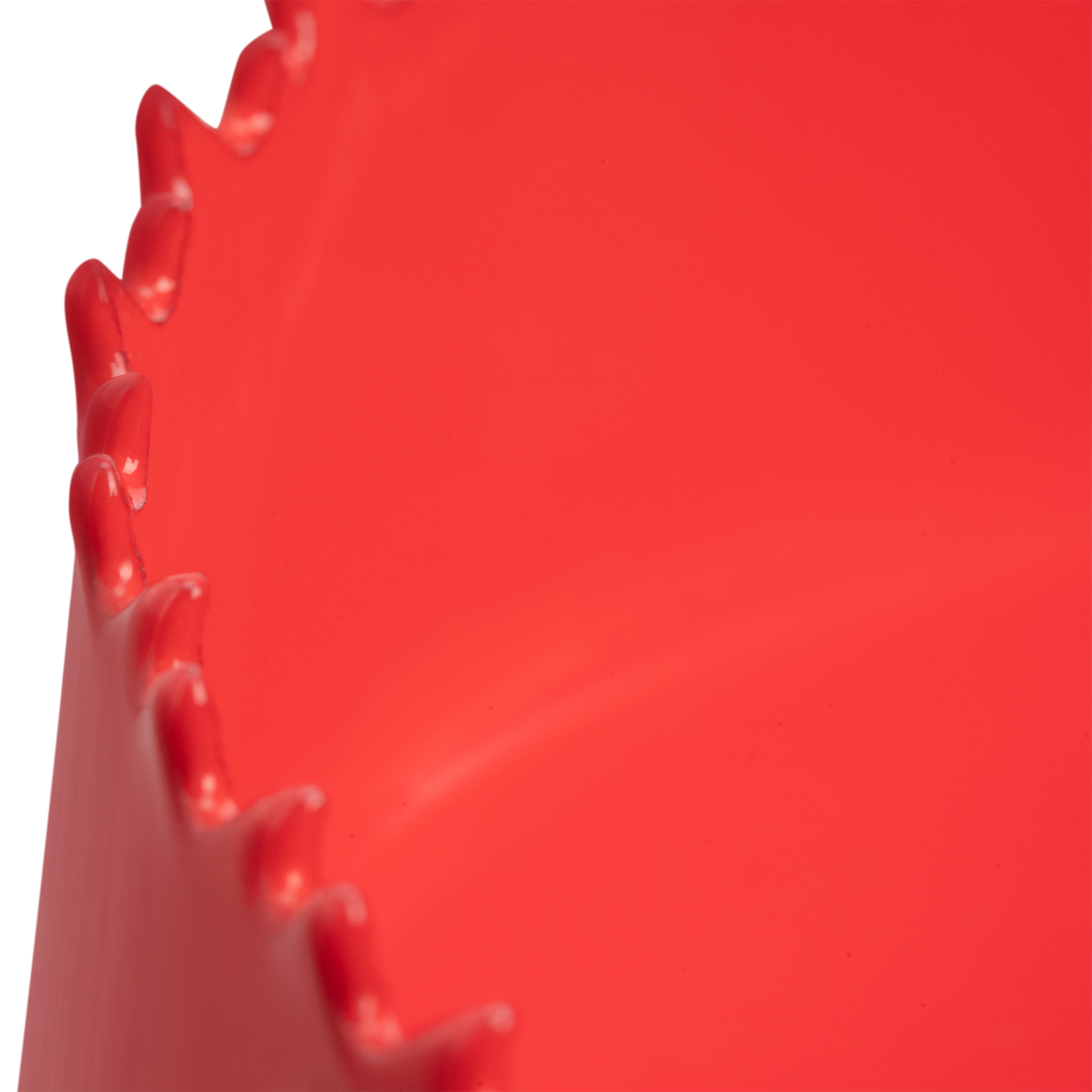 - Высокая производительность — зубья коронки разведены в разные стороны, что обеспечивает эффективный отвод стружки и высокую скорость сверления.