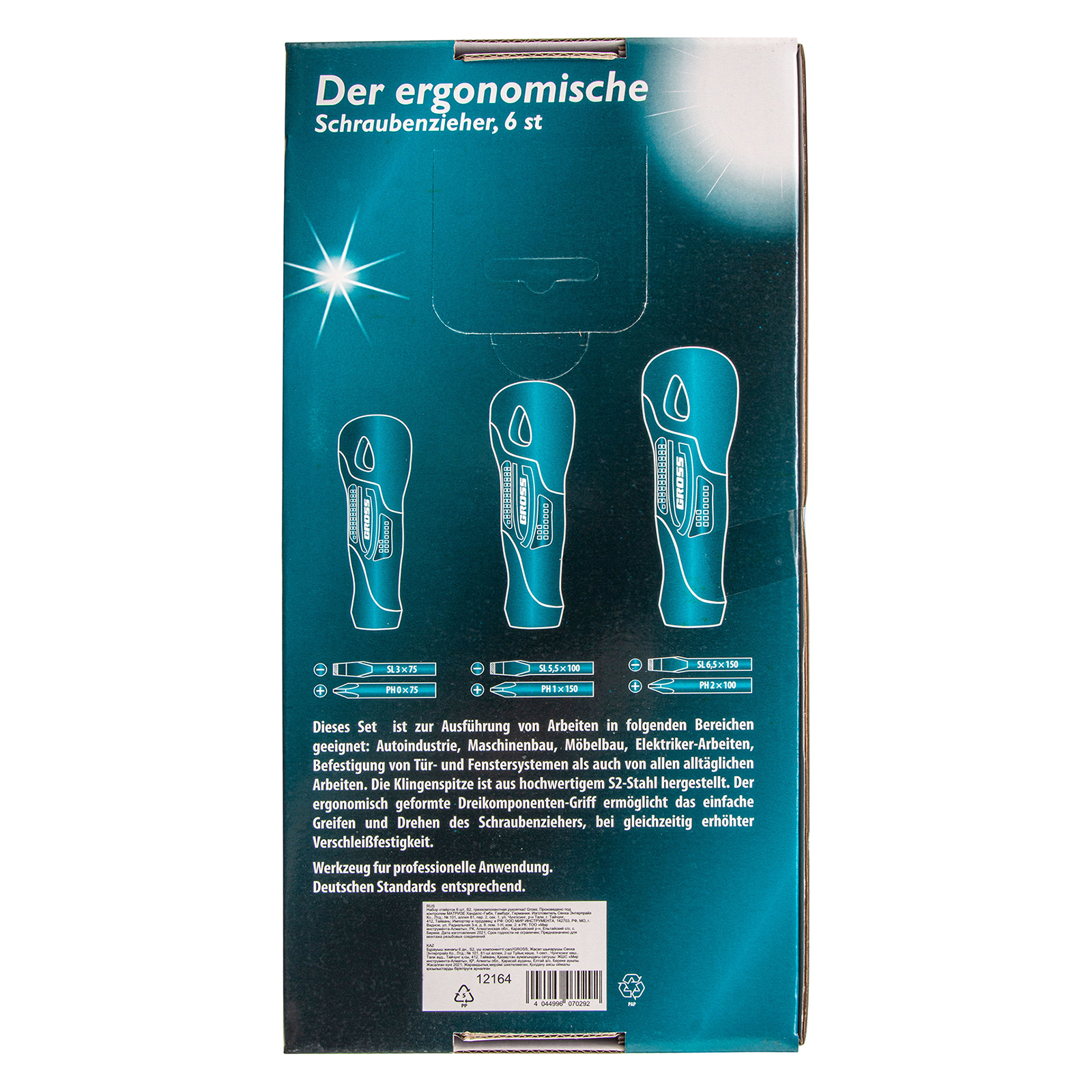 Набор из 6 отверток Gross 12164 из стали S2, с трехкомпонентными рукоятками, предназначен для монтажа и демонтажа крепежных элементов с профилем SL и PH. Высококачественные отвертки рассчитаны на повышенные нагрузки, поэтому подходят для бытового и профессионального использования. 6 отверток со стержнями длиной 75-150 мм позволяют работать с крепежом на поверхности и в углублениях.
