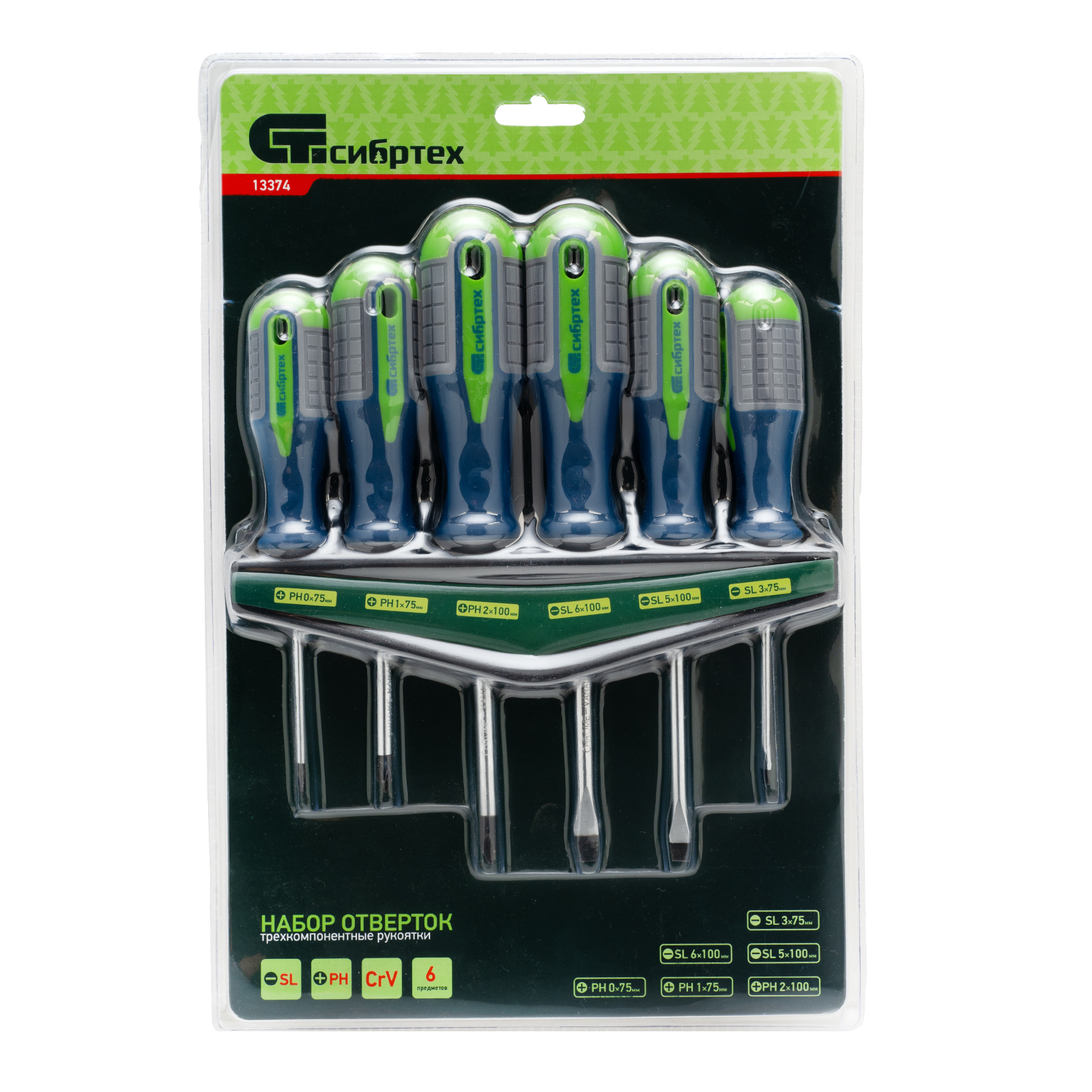 Набор отверток, CrV, трехкомпонентные рукоятки, 6 предметов Сибртех в Воронеже
