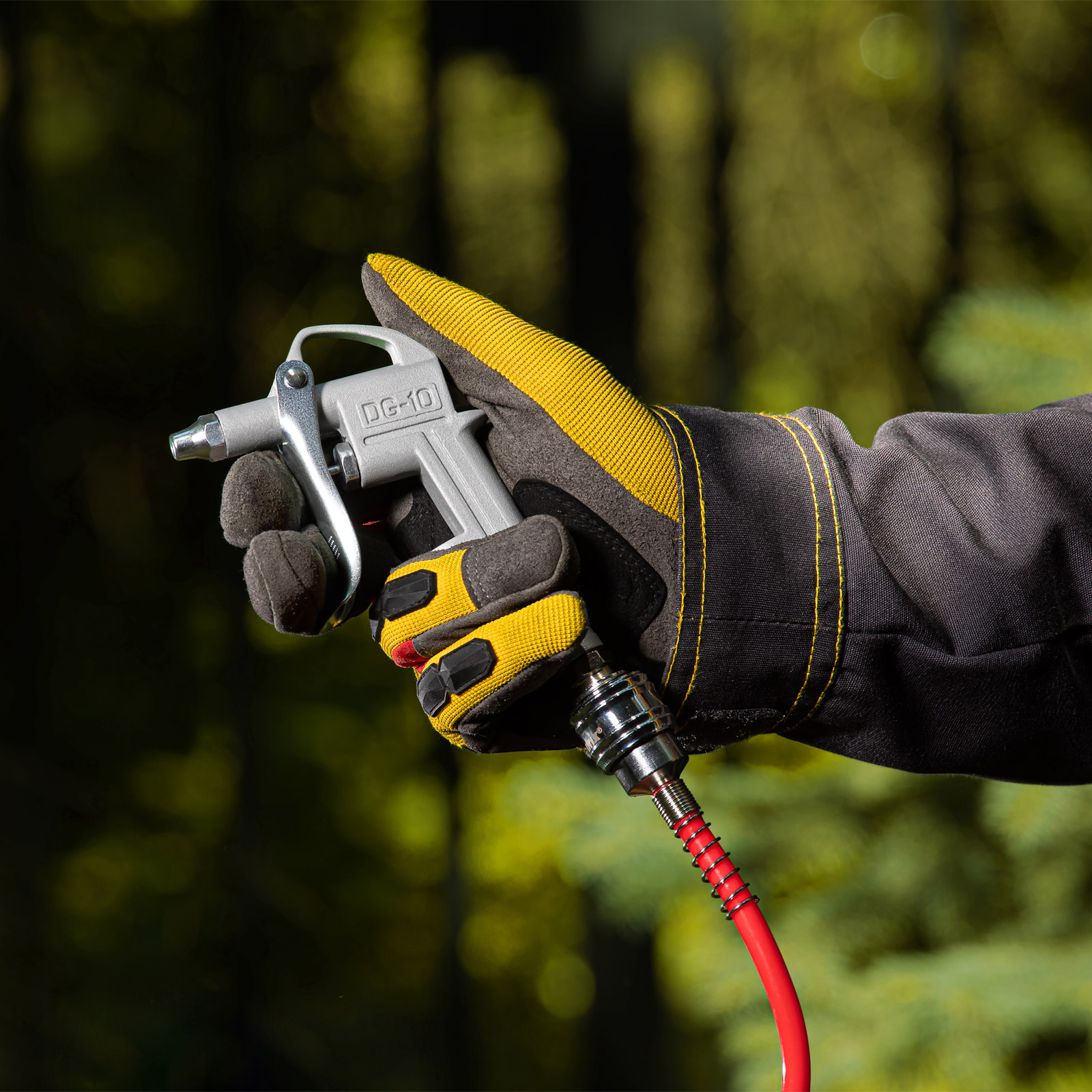 - Эффективная продувка — пневмопистолет производительностью 250 л/мин обеспечивает мощный воздушный поток, а небольшие размеры и малый вес 0,125 кг позволяют использовать его в труднодоступных местах.