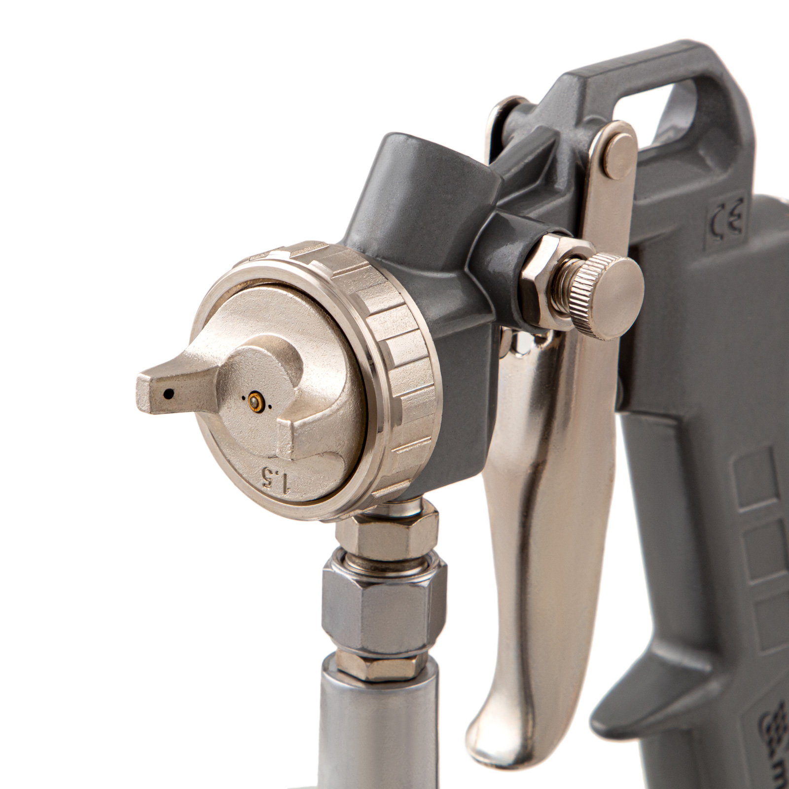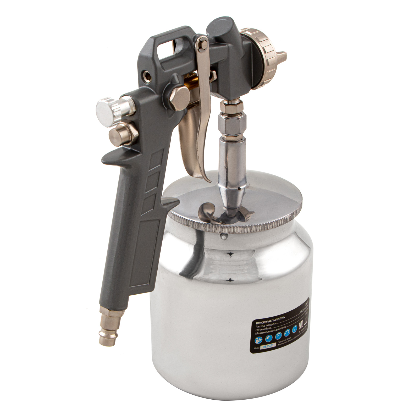 - Удобная эксплуатация — бак краскораспылителя расположен снизу и не загораживает обзор мастеру.