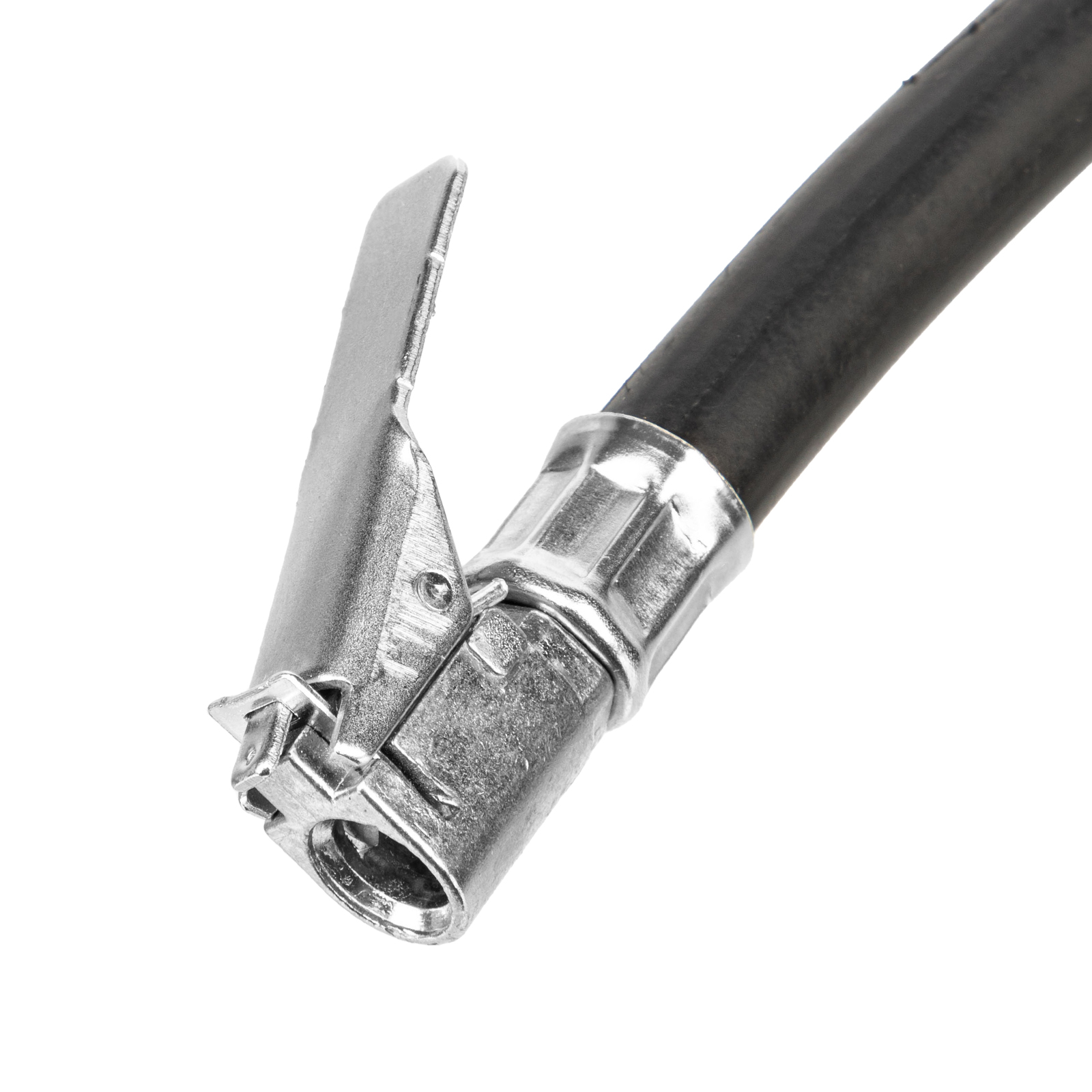 - Надежная фиксация — на конце шланга для накачки шин имеется специальный зажим.