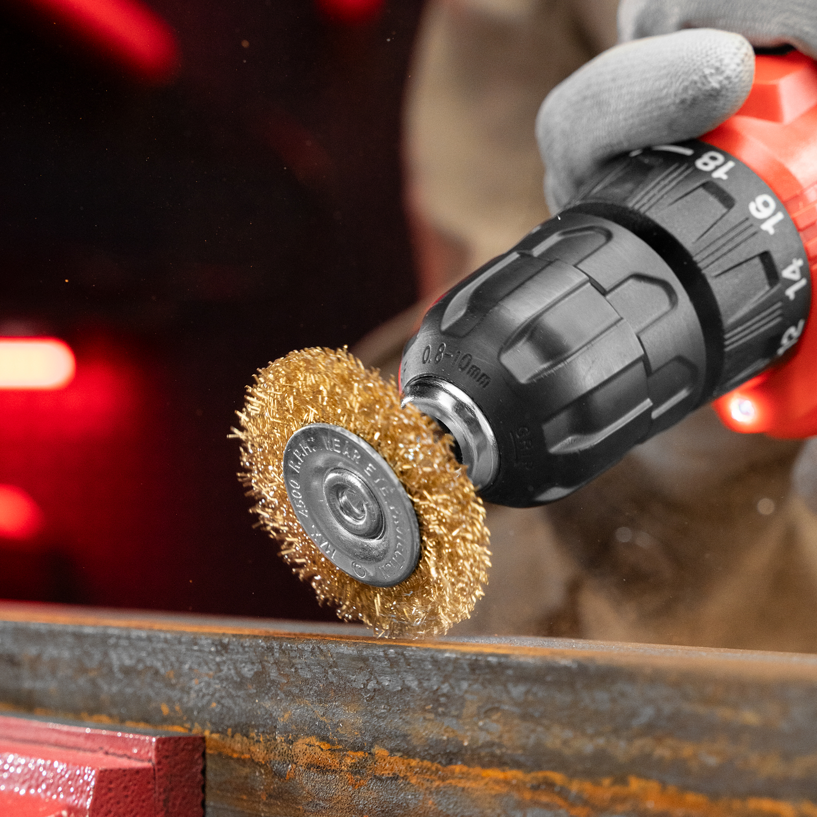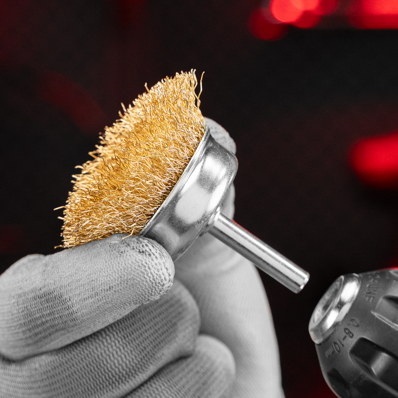- Универсальность — щетки подходят для обработки любых твердых материалов: древесины, металла, пластика и т.д.