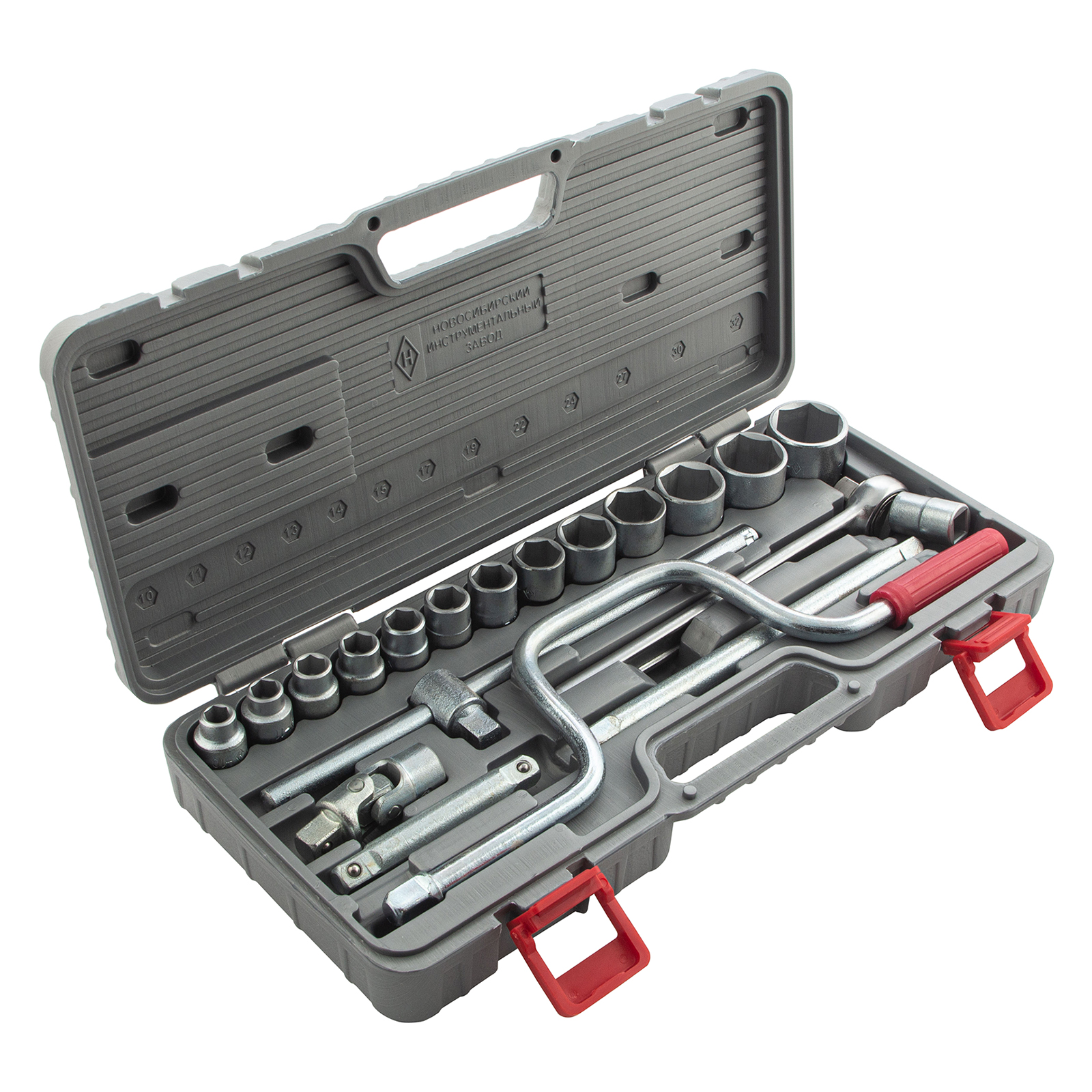 Головки 10, 11, 12, 13, 14, 15, 17, 19, 22, 24, 27, 30, 32 - 13 штКлюч трещотка - 1 штВороток Т-образный - 1 штУдлинители 125, 250 - 2 штШарнир - 1 штКоловорот - 1 штКейс - 1 штТрещотка - 1 шт |