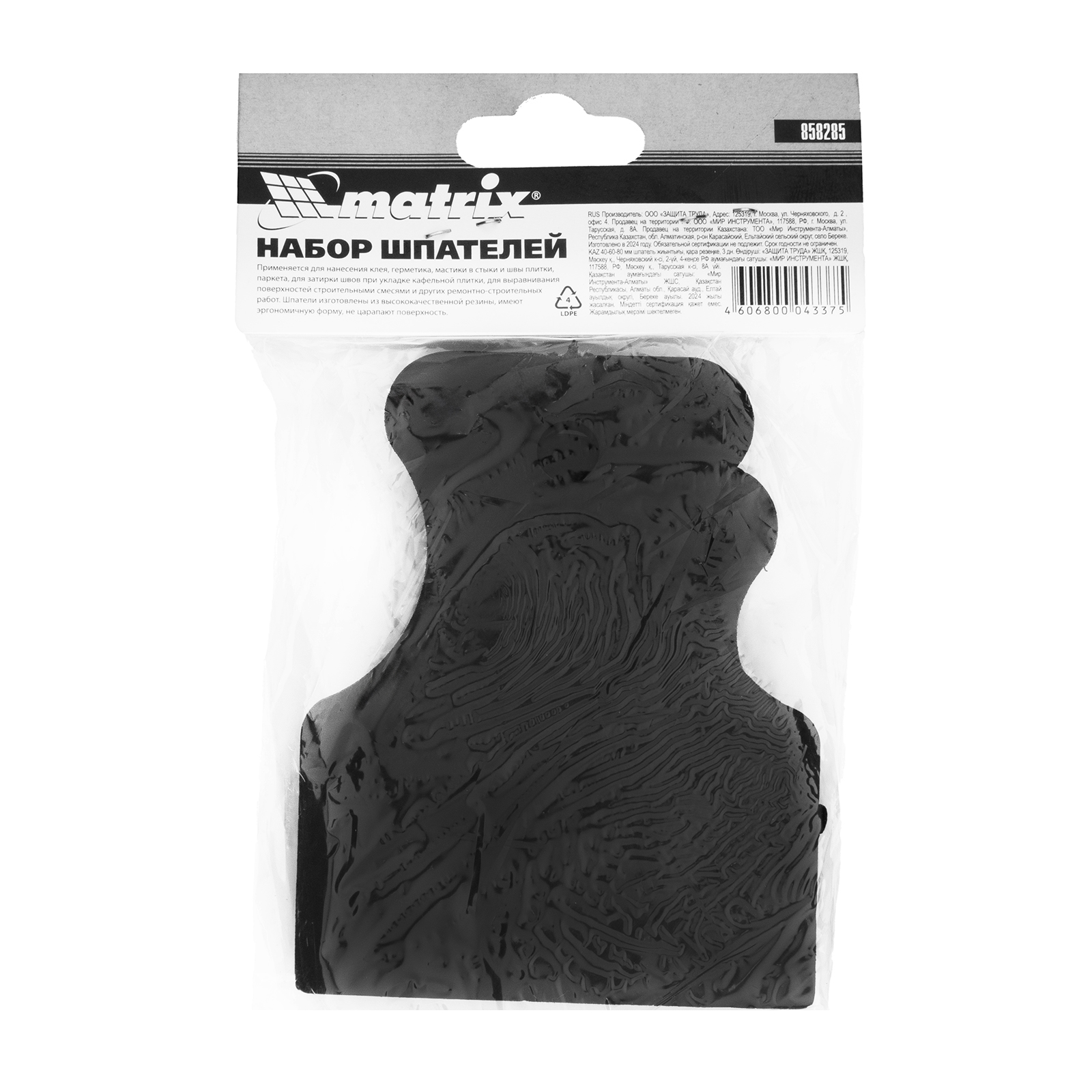 Набор Matrix 858285 включает в себя 3 шпателя из черной резины размером 40-60-80 мм. Используется для создания финишных покрытий, затирки плиточных швов и работы с герметиками. Резиновые рабочие поверхности не оставляют следов и царапин, обеспечивают ровное нанесение материалов.