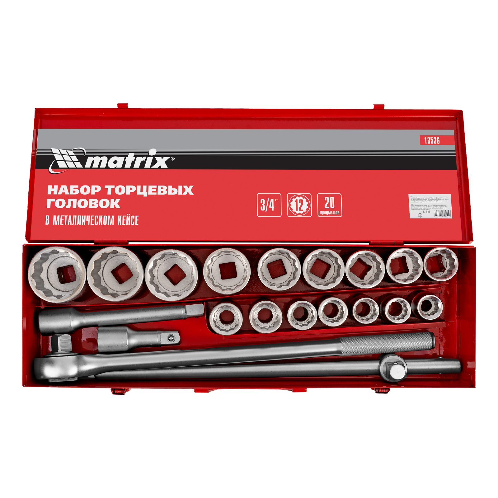 Набор торцевых головок 3/4", головки 19 х 50 мм, 20 предметов, в метал. боксе Matrix в Воронеже