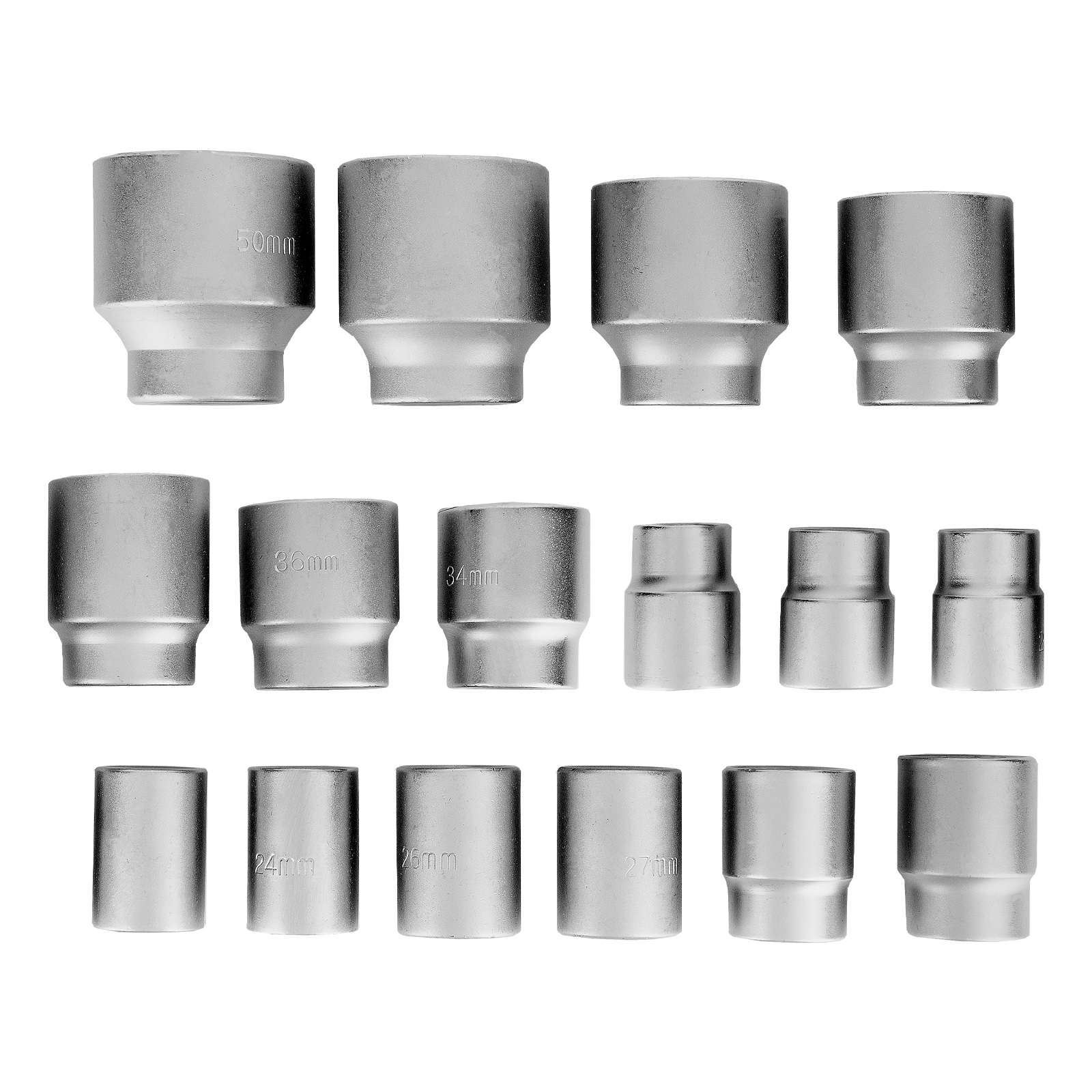 Набор торцевых головок Matrix 13536 с присоединительным квадратом 3/4" и 12-гранным профилем используется для работы с резьбовыми крепежными элементами размером от 19 до 50 мм. Применяется для ремонта и обслуживания автобусов и грузовых автомобилей.