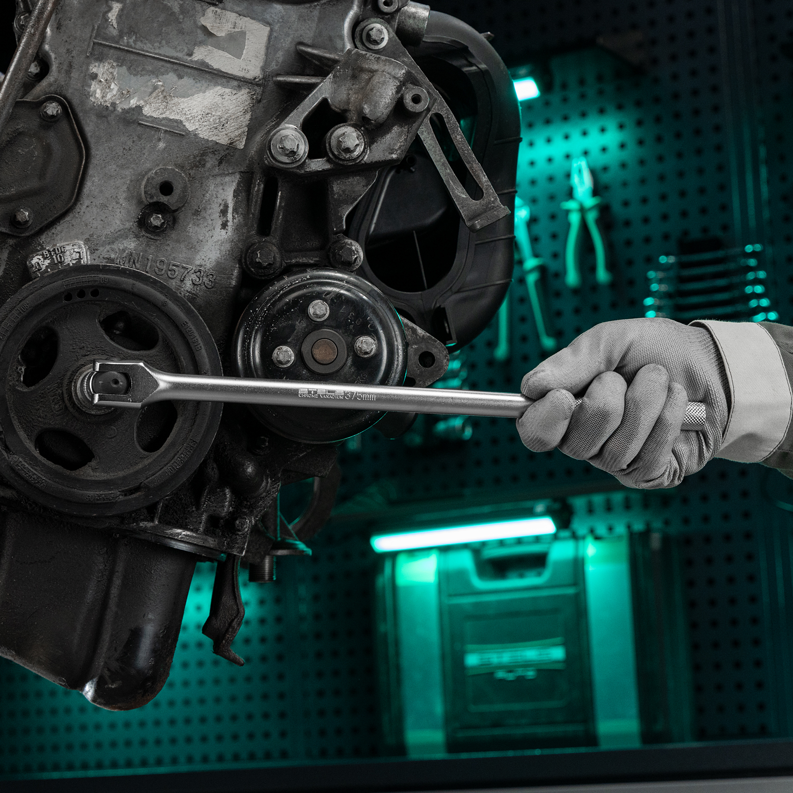 - Удобная работа в труднодоступных местах — трещотка с 72 зубьями позволяет вращать крепеж плавно и мягко.