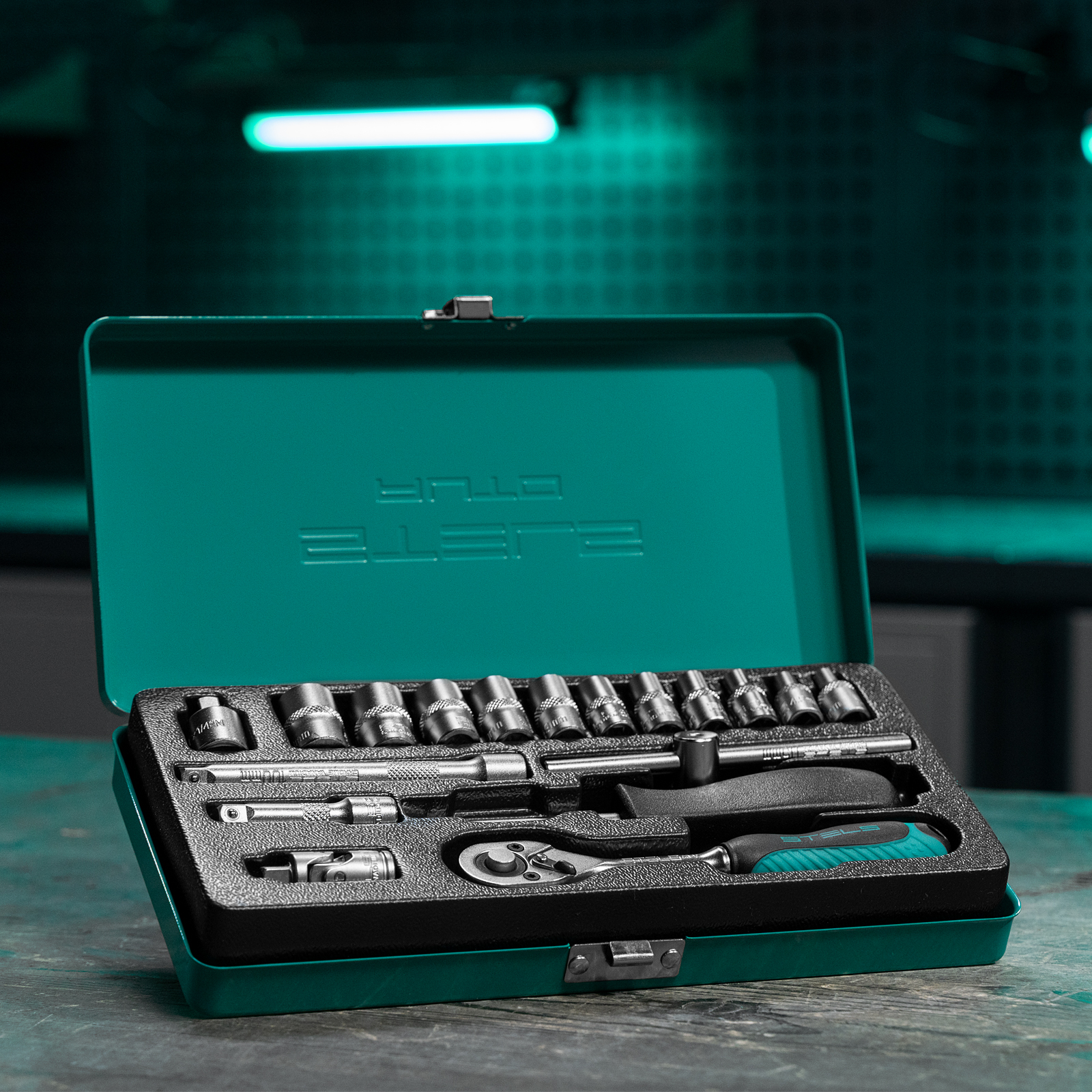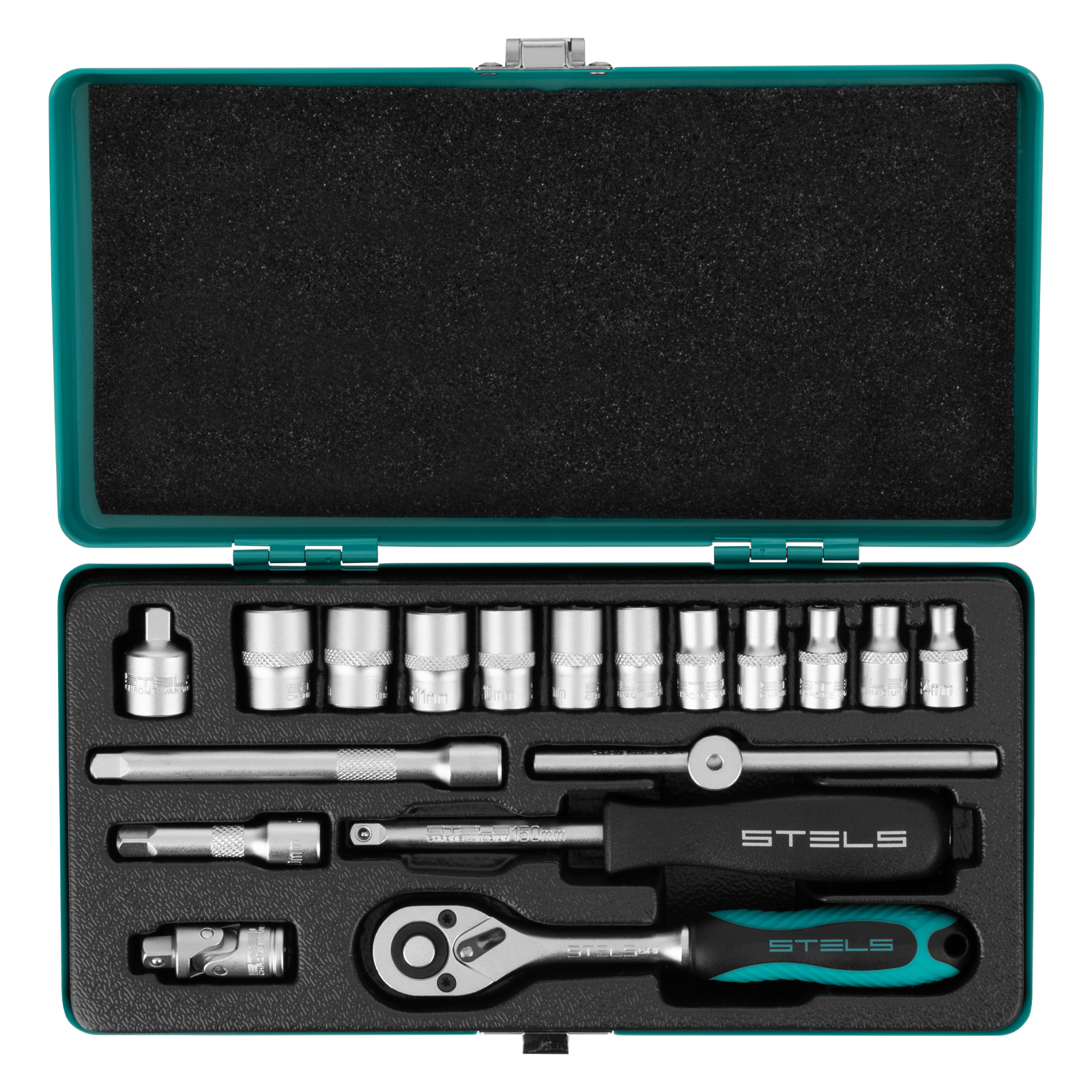 Набор торцевых головок с трещоткой Stels 13573, с присоединительным размером 1/4 дюйма, включает в себя 18 предметов. Он станет незаменимым помощником для специалистов СТО и автолюбителей, пригодится в гараже, поездке, а также дома и на даче.