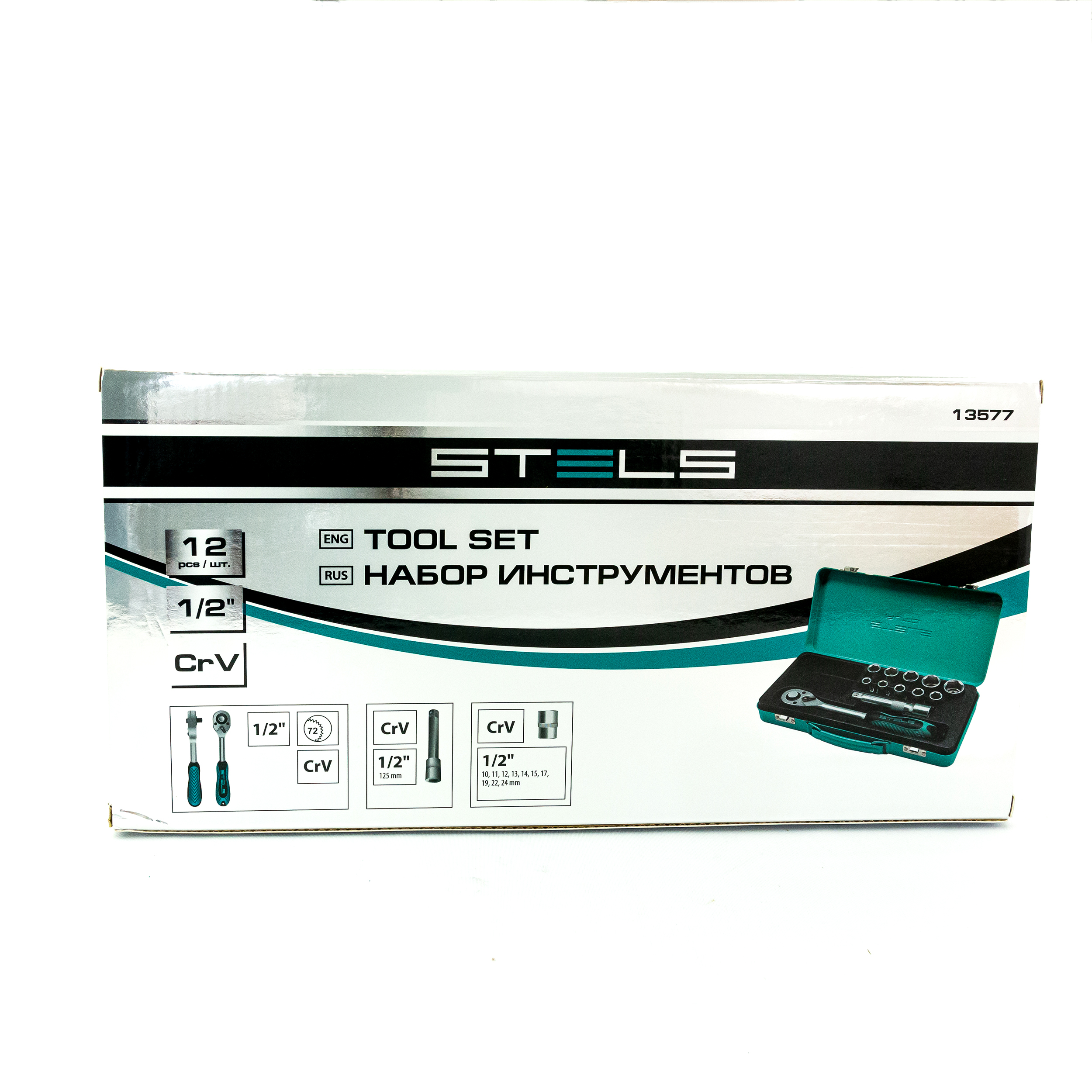 Набор торцевых головок 10-24 мм с трещоточным ключом Stels 13577, с присоединительным размером 1/2 дюйма, включает в себя 12 предметов. Он станет незаменимым помощником для специалистов СТО и автолюбителей, пригодится в гараже, поездке, а также дома и на даче.