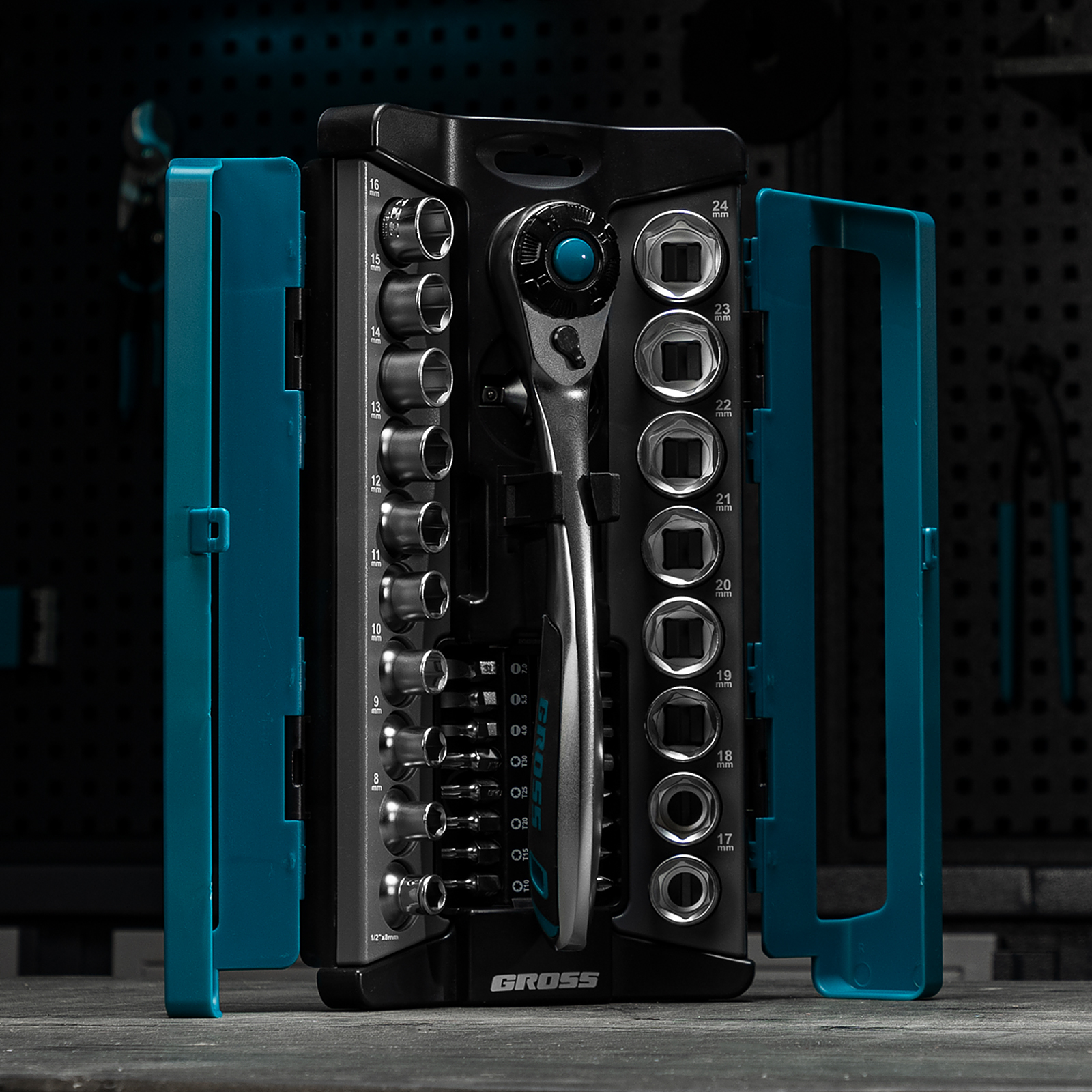 Набор торцевых головок, трещотка 120 зубьев, 1/2", CrV, 36 предметов Gross в Воронеже
