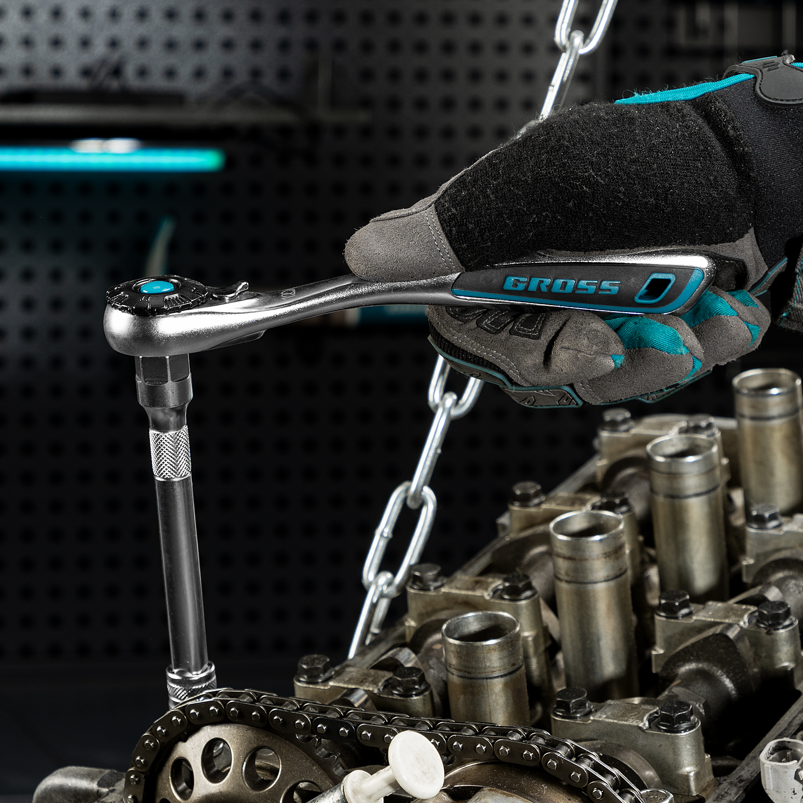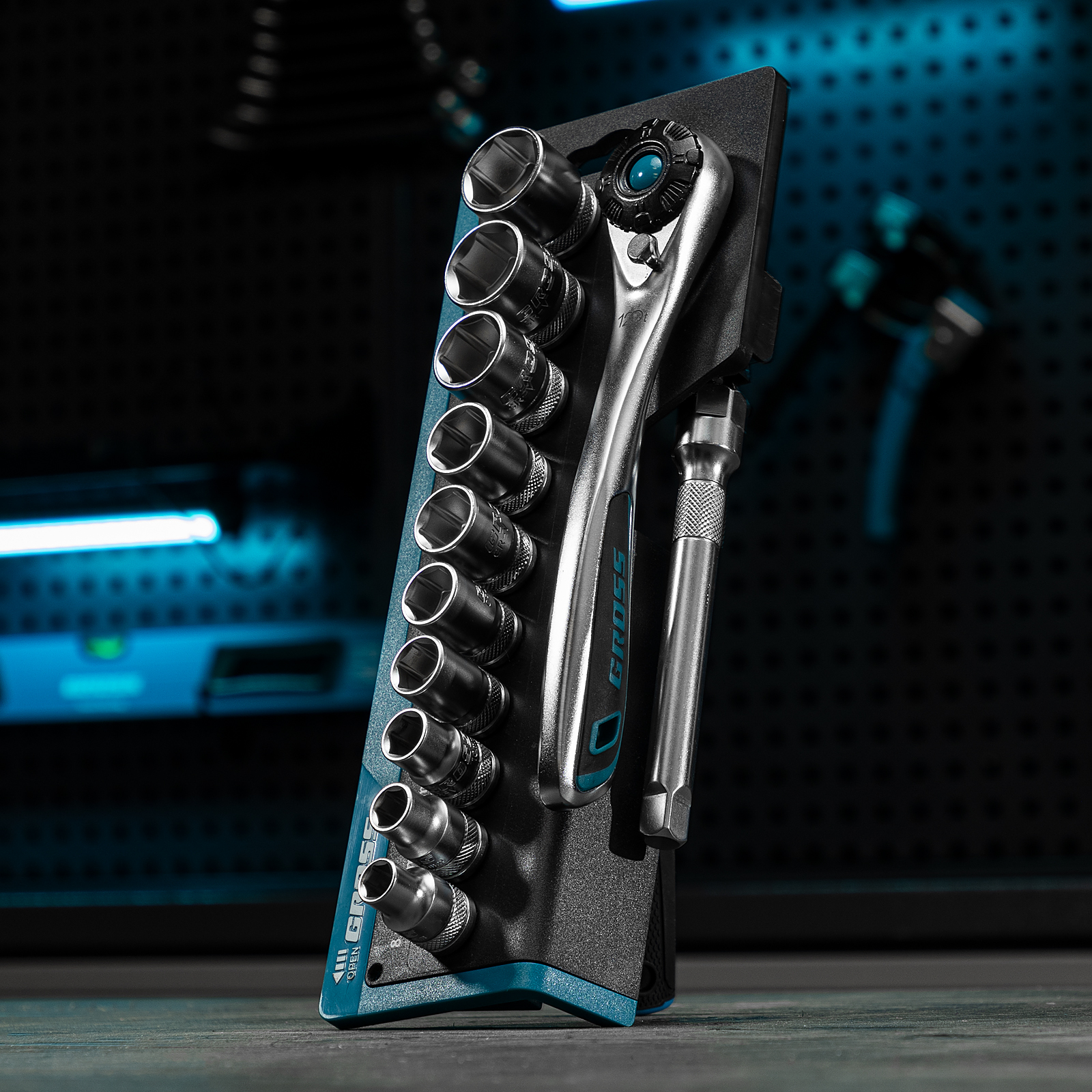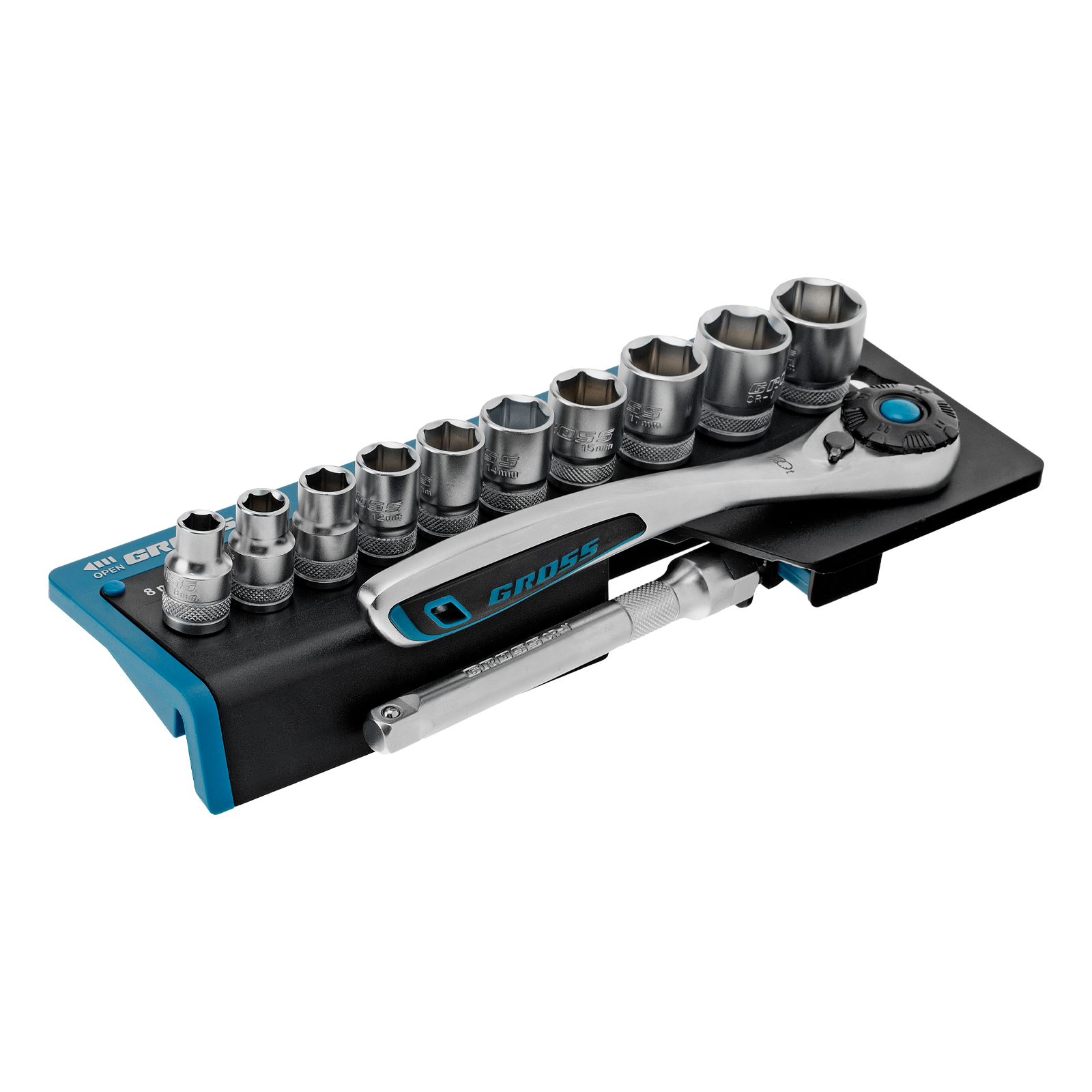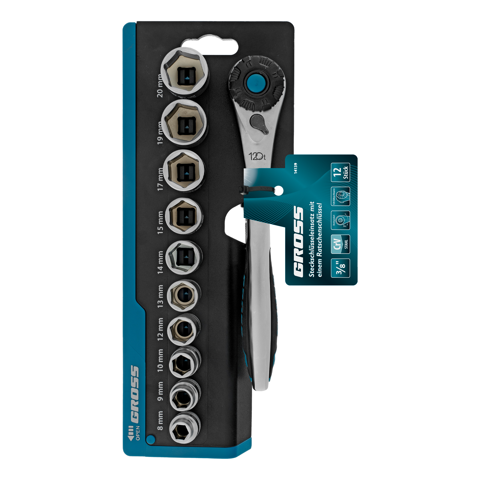Набор торцевых головок, трещотка 120 зубьев, 3/8", CrV, 12 предметов Gross в Воронеже