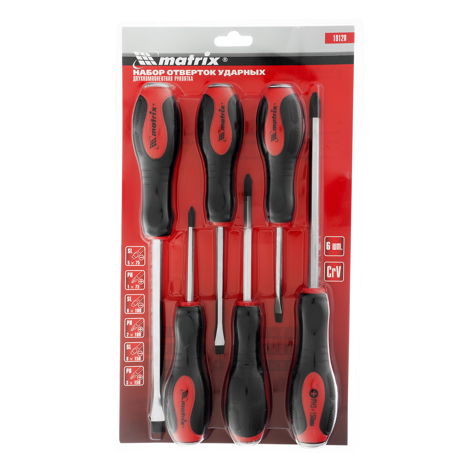 Набор ударных отверток 6 шт, PH1 х 75, PH2 х 100, PH3 х 150, SL5 х 75, SL6 х 100, SL8 х 150, CrV Matrix в Воронеже