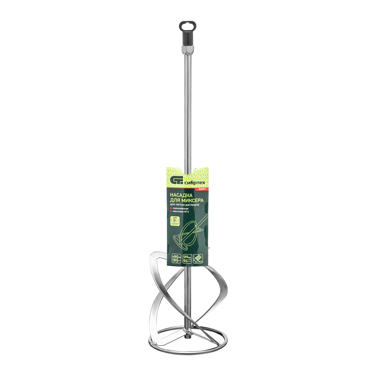 Насадка для миксера, для легких растворов, 160 х 590 мм, оцинкованная, хвостовик резьба М14 Сибртех в Воронеже