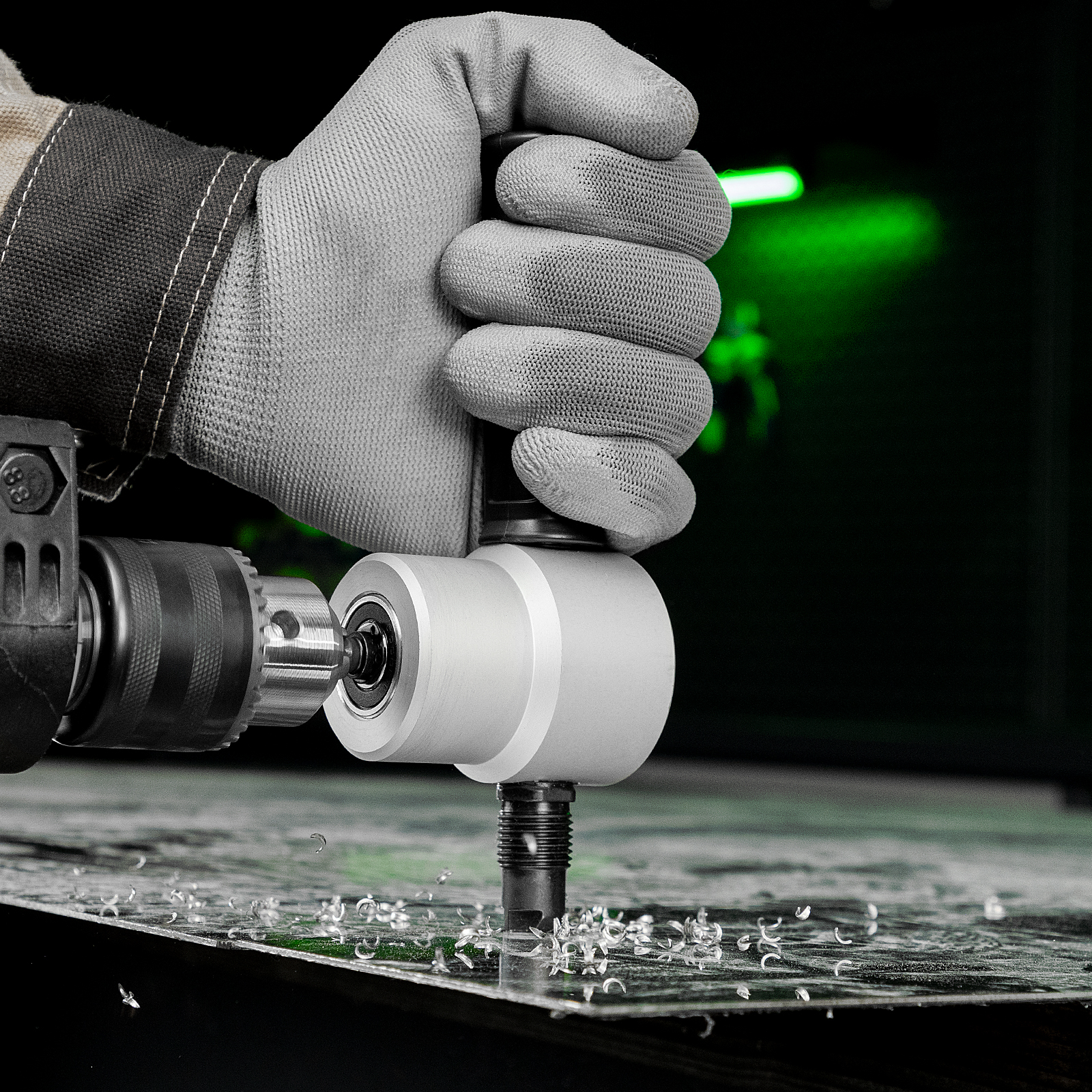 Насадка на дрель для резки листового металла Сибртех 78301 позволяет разрезать сталь толщиной до 1,8 мм, нержавеющую сталь толщиной до 1,2 мм, медь и алюминий — до 2 мм. Ширина реза составляет 6 мм, он может быть не только прямым, но и фигурным. Приспособление устанавливается на электрические дрели со скоростью вращения 3000 об/мин. Насадка для резки металла будет полезна при проведении кровельных работ, а также пригодится в слесарной мастерской, на даче или в гараже.