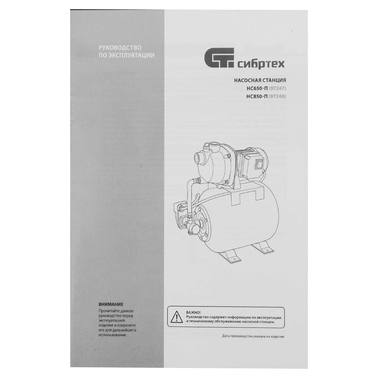 Насосная станция НС650-П, 650 Вт, напор 37 м, 3200 л/ч, ресивер 19 л Сибртех в Воронеже