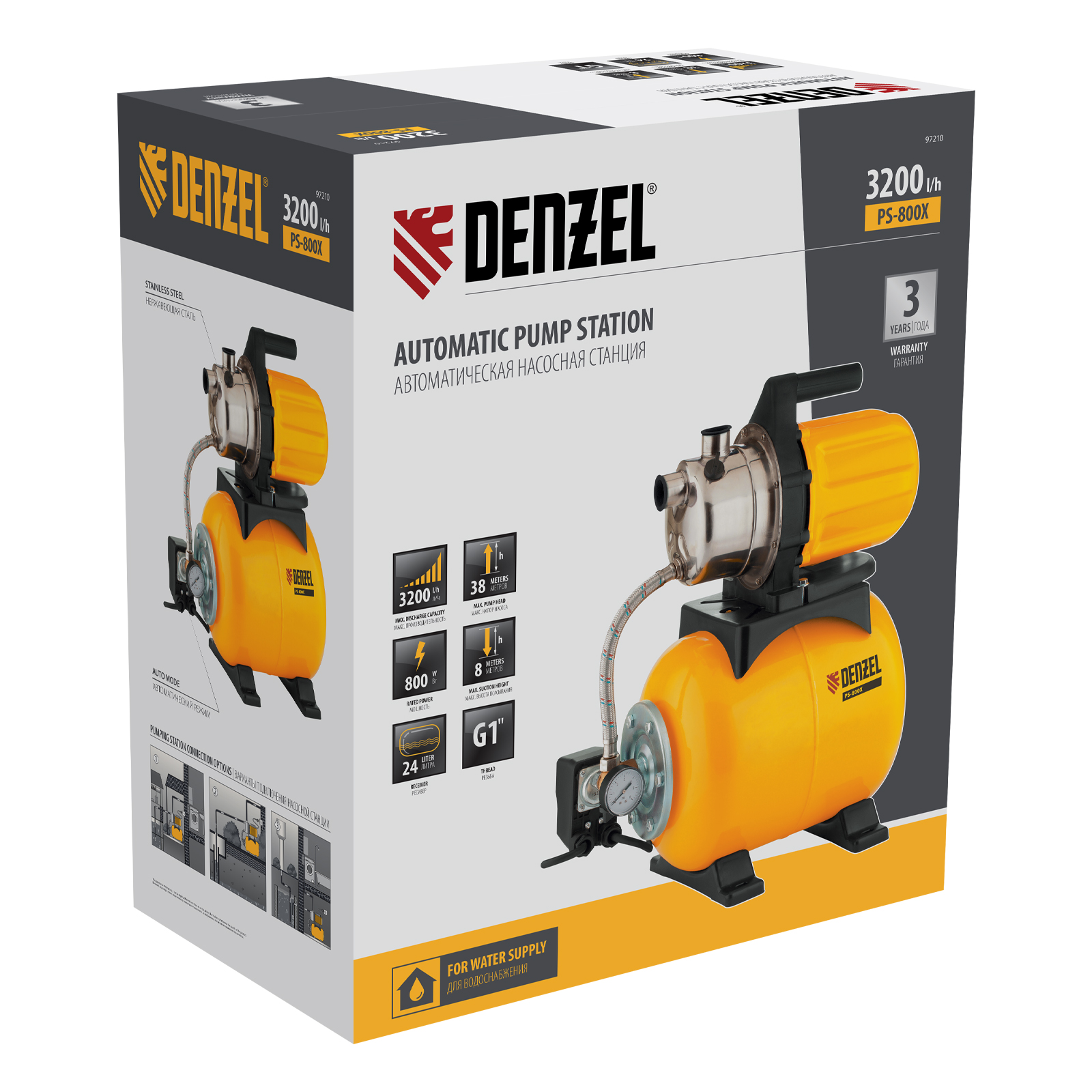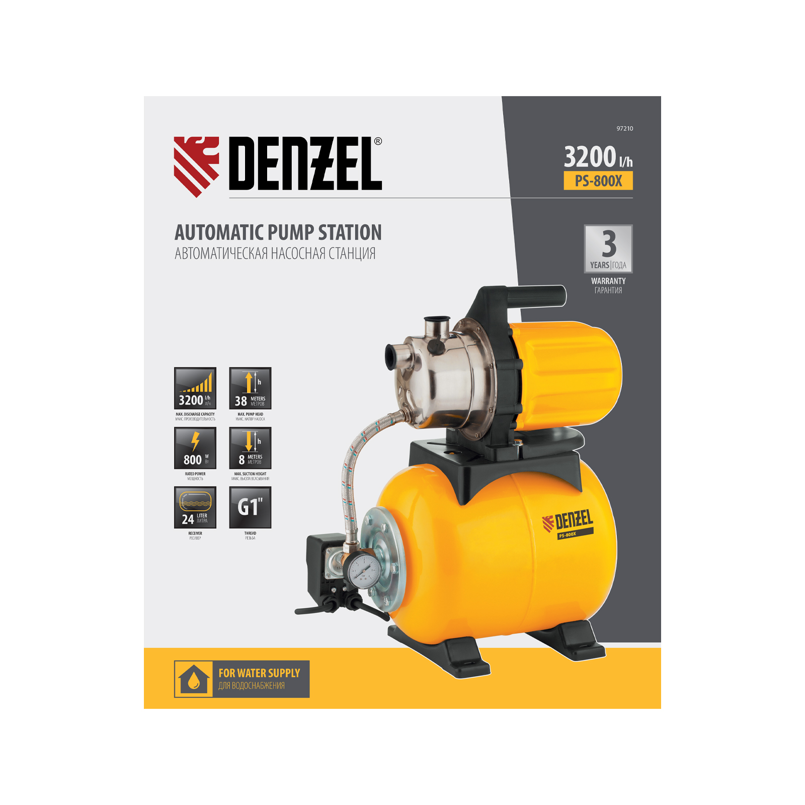 Насосная станция PS800X, 800 Вт, 3200 л/ч, ресивер 24 л, подъем 38 м, нержавейка Denzel в Воронеже