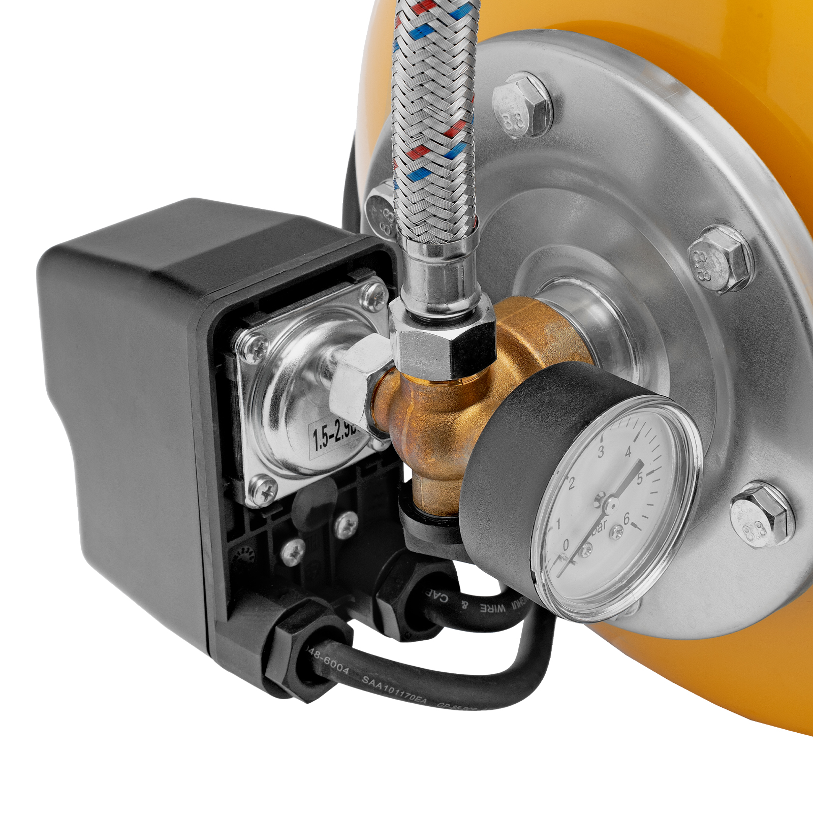 - Высокая производительность — ресивера на 24 литра достаточно, чтобы обеспечить водой несколько точек потребления.