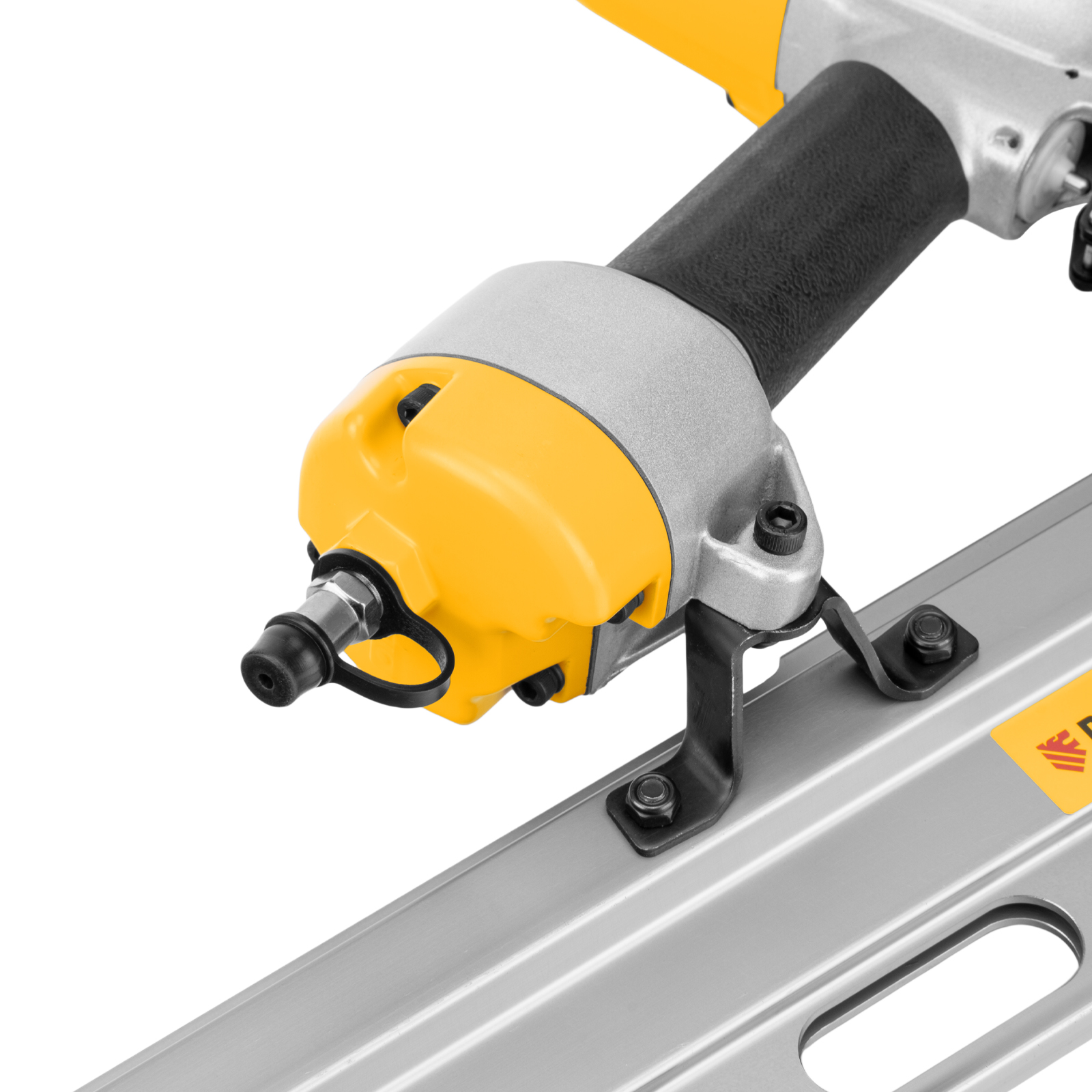 - Небольшой вес 3,8 кг — пистолет удобно удерживать одной рукой, в том числе при забивании гвоздей в вертикальные поверхности и потолок.