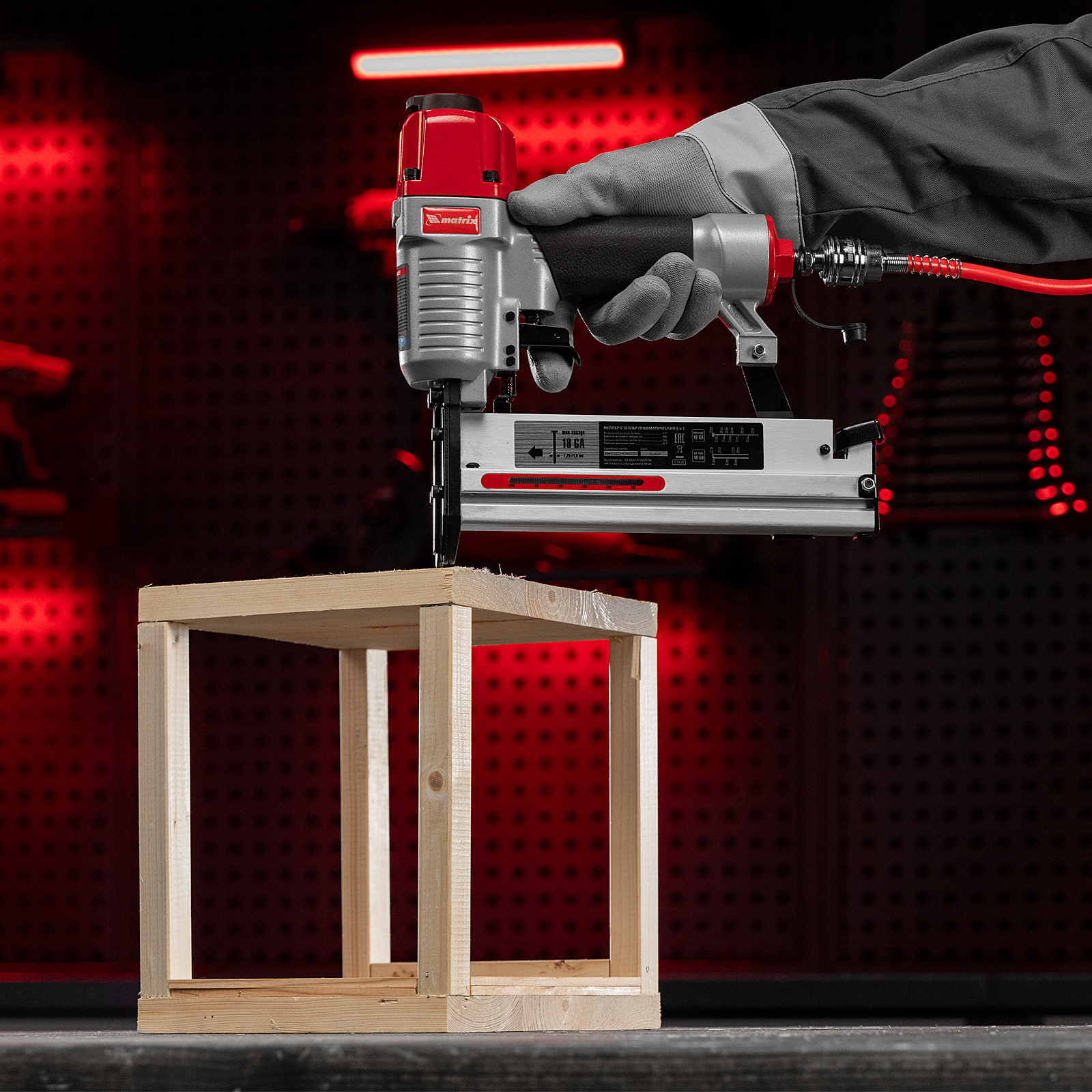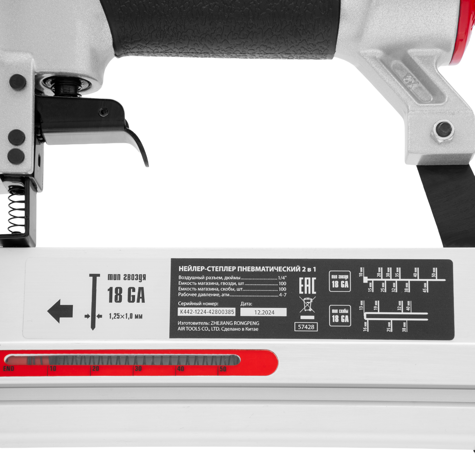 - Малый вес 1,33 кг — длительная работа со степлером-нейлером не вызывает дискомфорт.