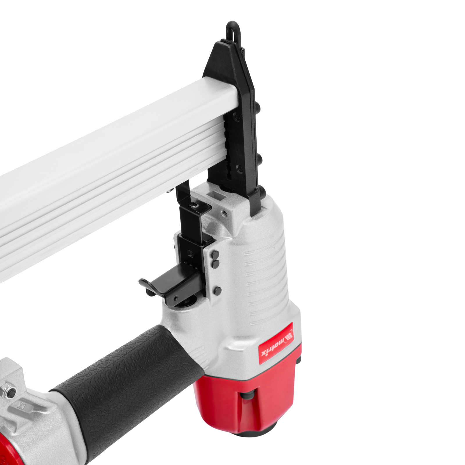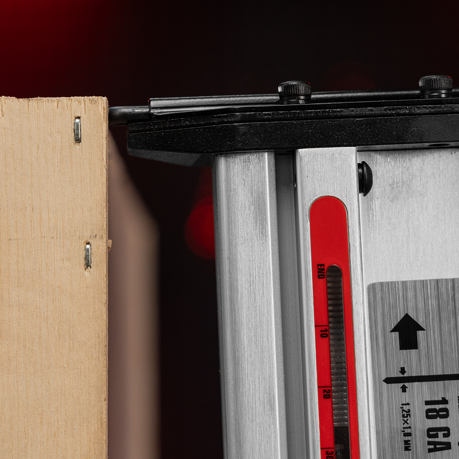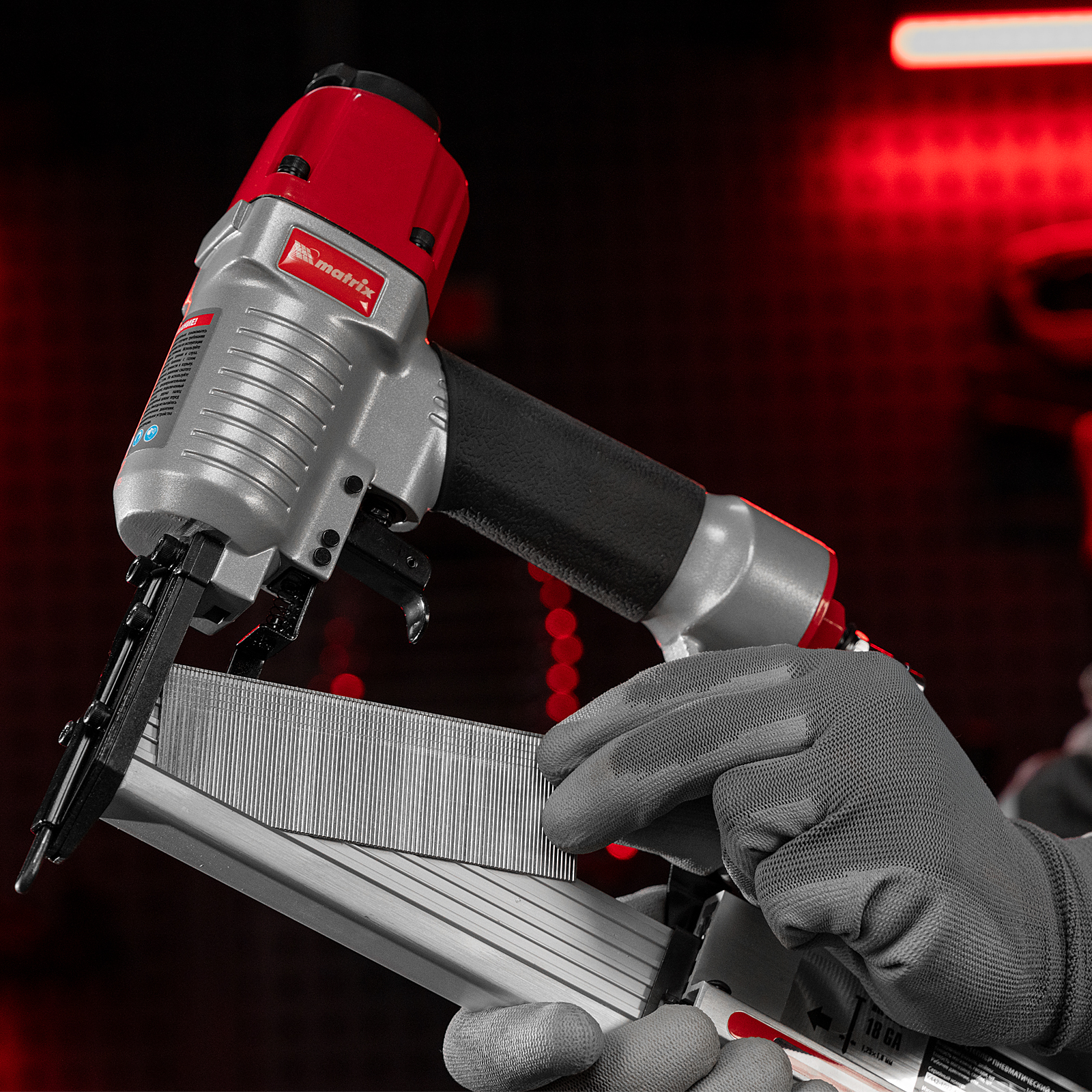 - Индикатор заполнения магазина — можно отслеживать количество крепежей для своевременной зарядки инструмента.