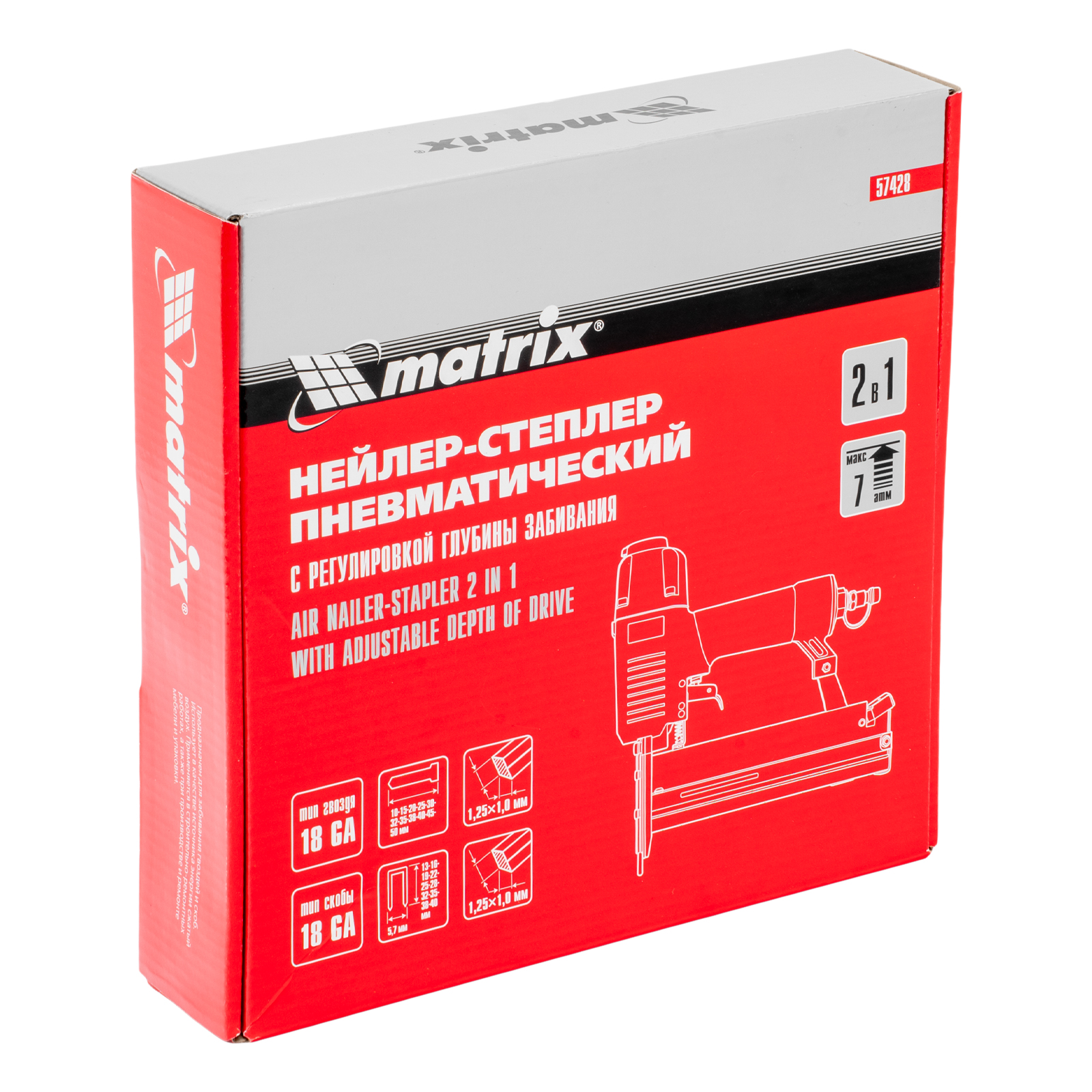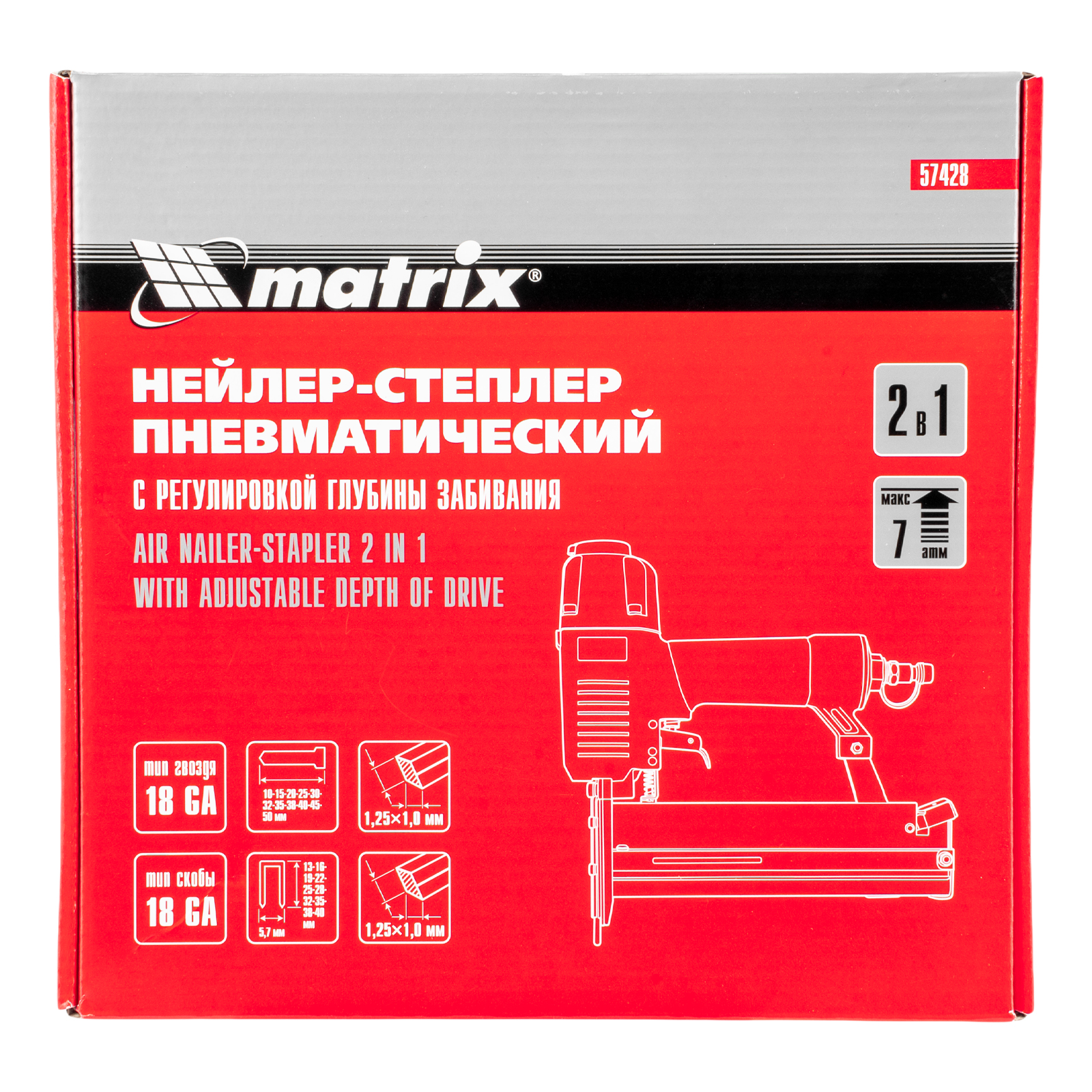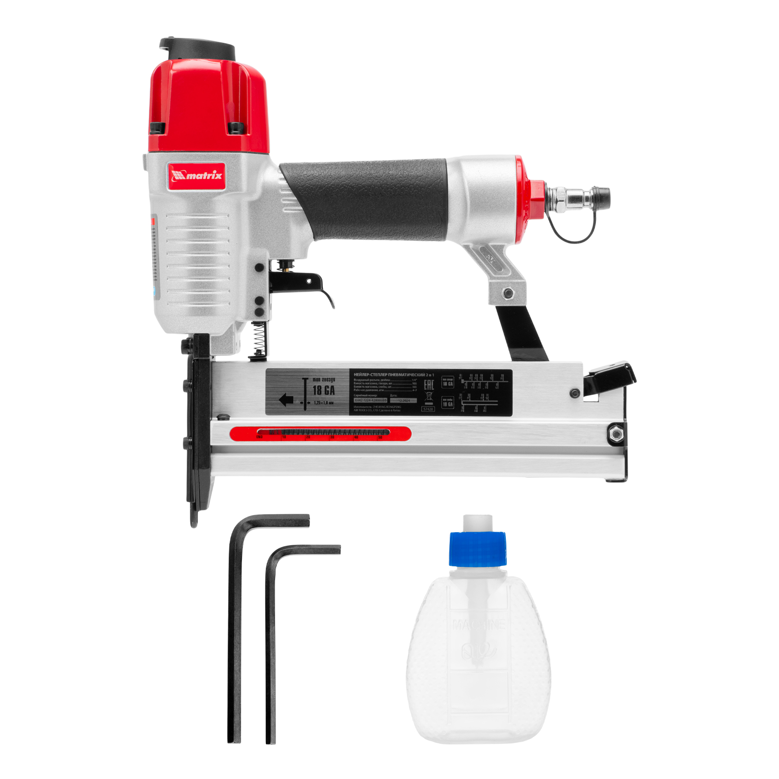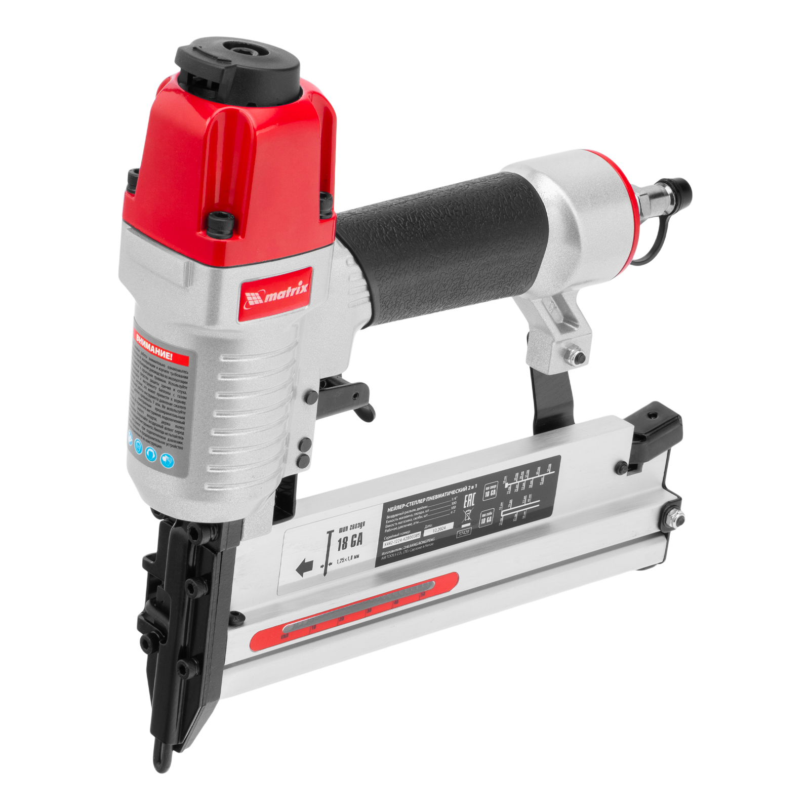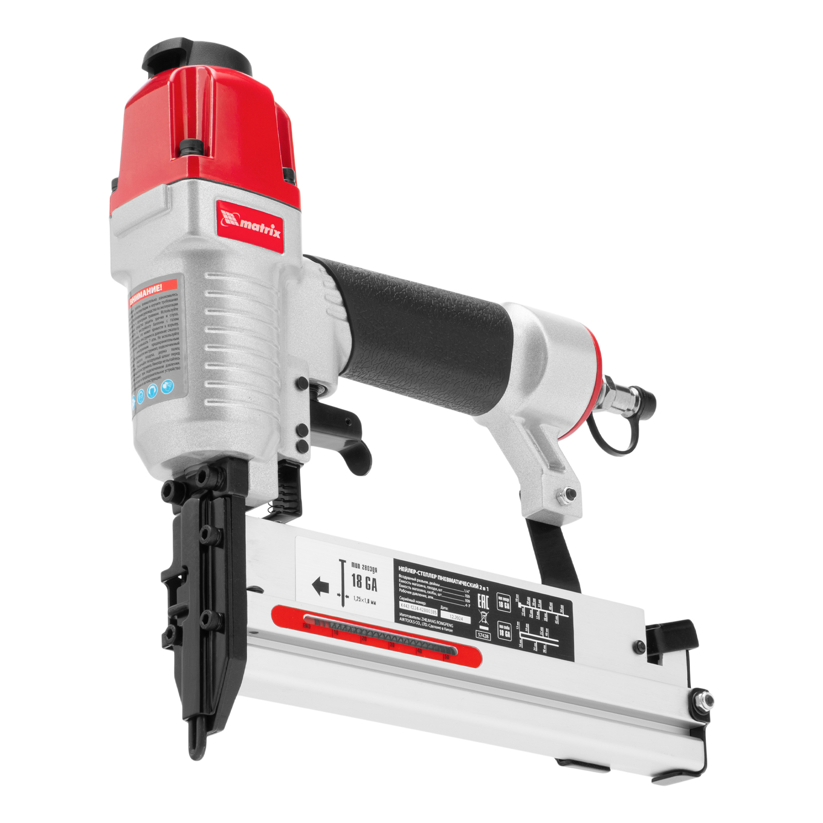 Нейлер-степлер пневматический 2 в 1, с регулировкой глубины забивания, гвозди 18GA, скобы 18GA Matrix в Воронеже