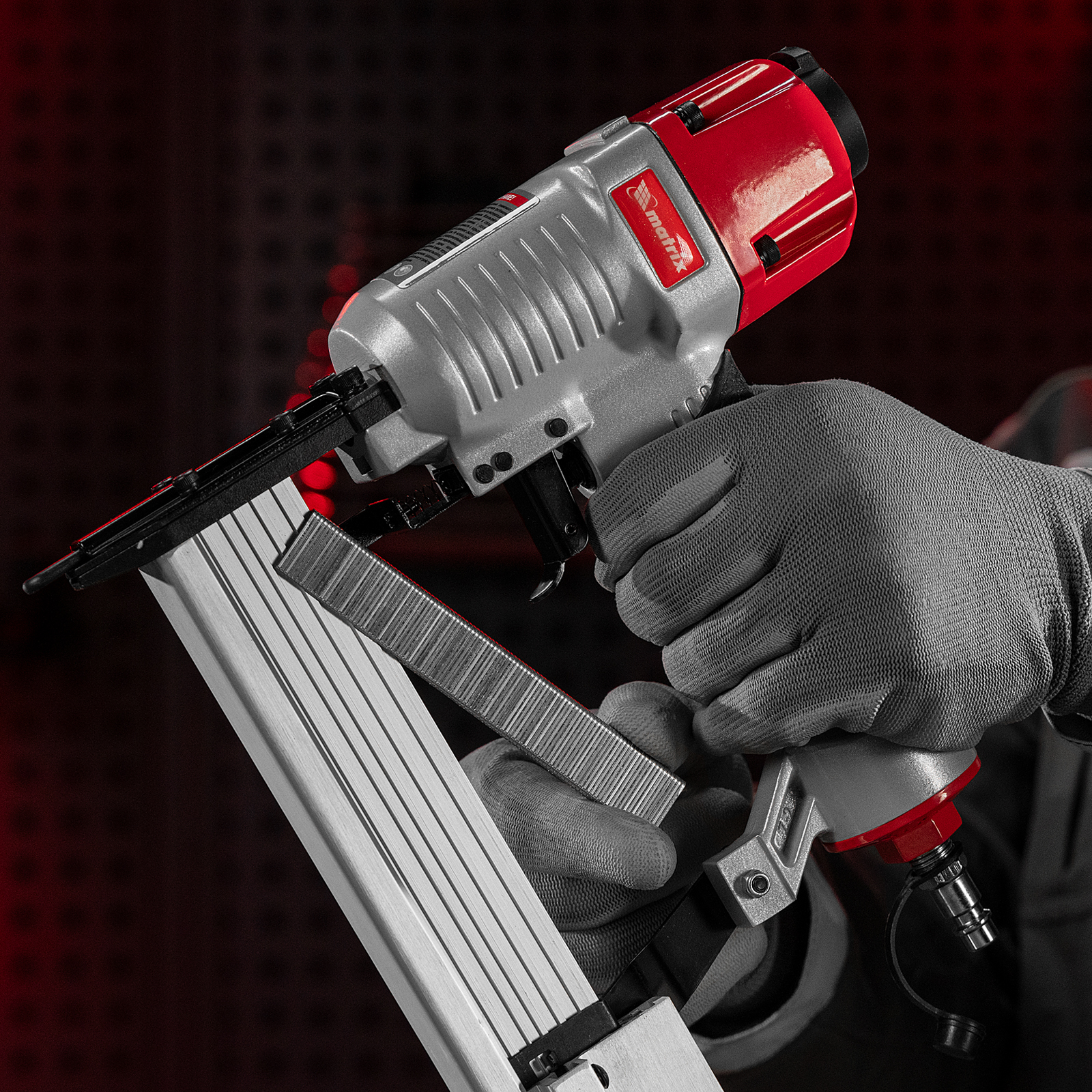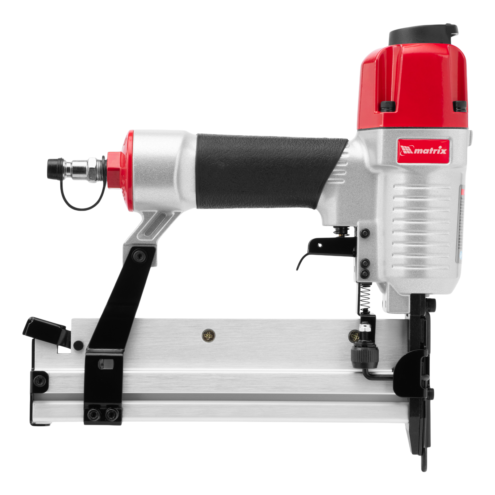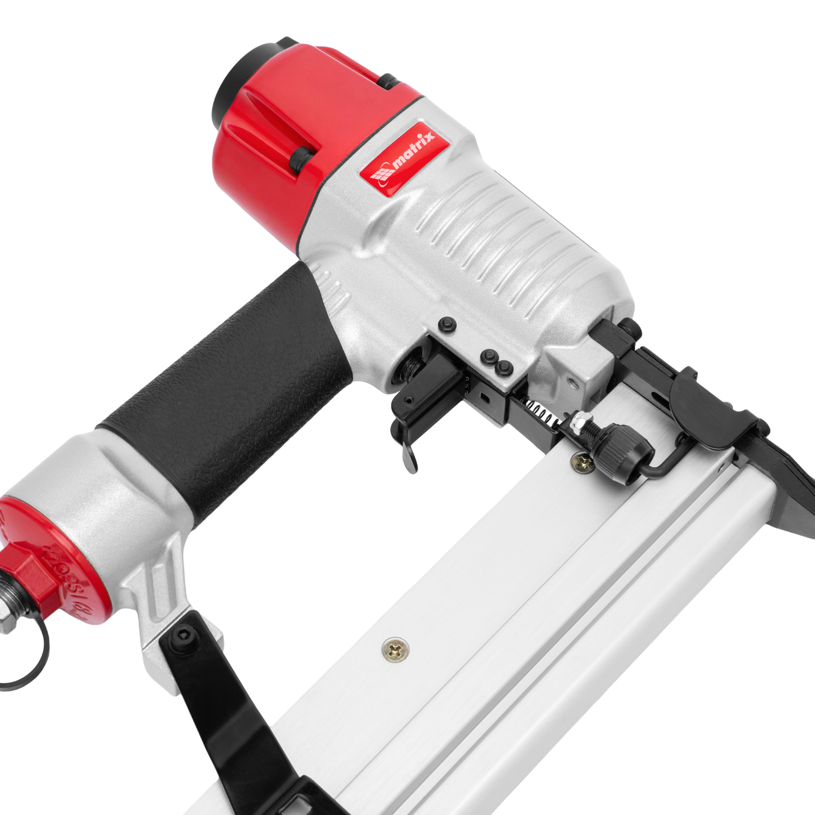 Пневматический нейлер-степлер Matrix 2 в 1 57428 с функцией регулировки глубины забивания предназначен для быстрого скрепления различных материалов гвоздями и скобами 18GA. Его используют для сборки мебели и деревянных каркасов, обшивки и утепления домов, монтажа окон, дверей, плинтусов или напольных покрытий. Нейлер-степлер подключается к любым типам компрессоров, т.к. расход воздуха составляет всего 0,7 л/мин.