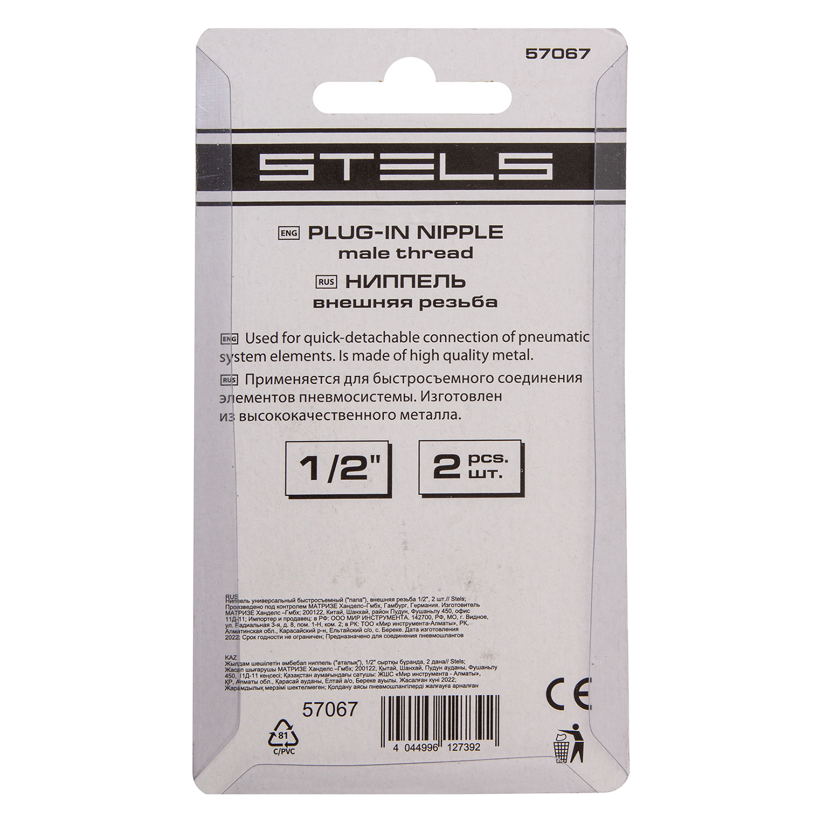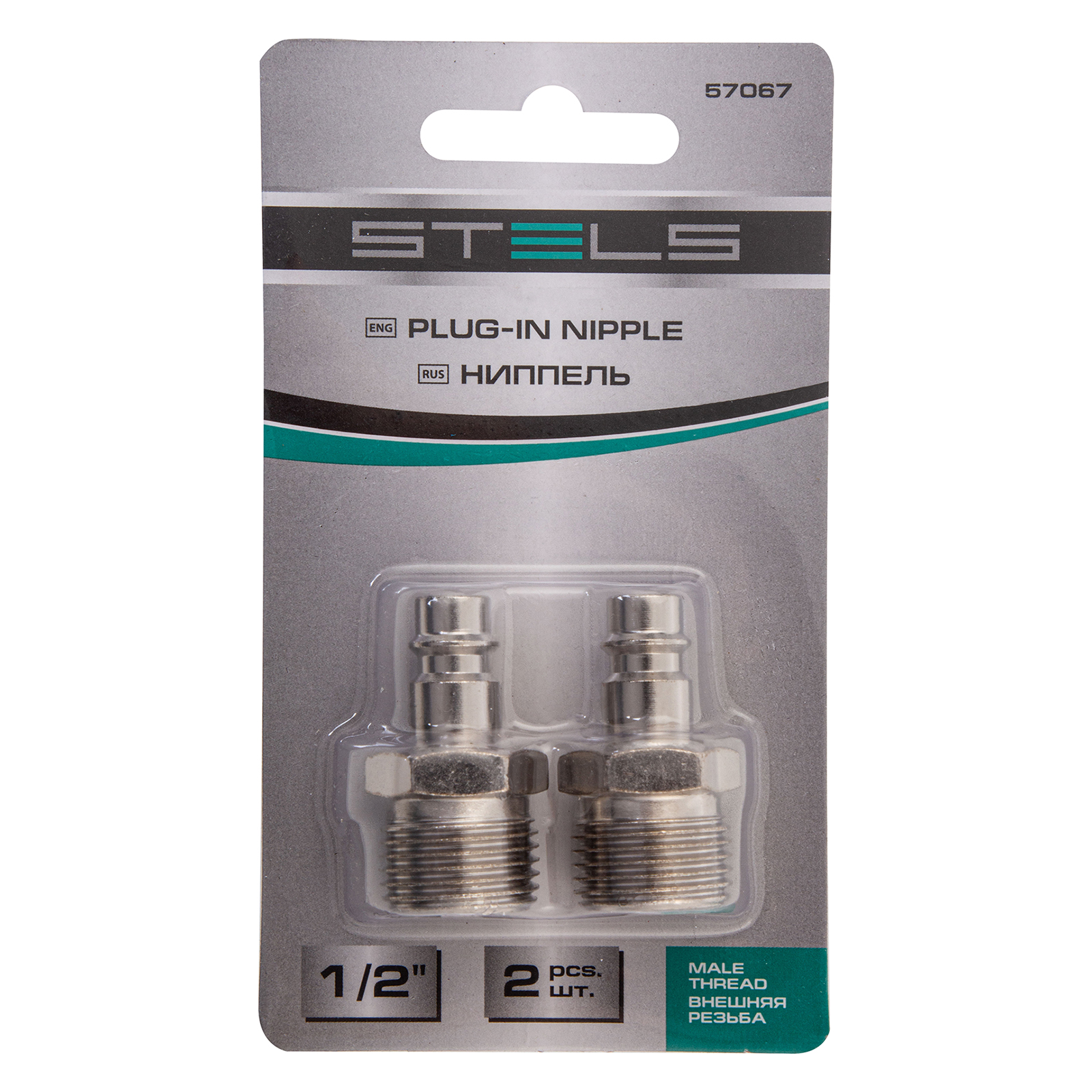 Универсальный быстросъемный ниппель Stels 57067, 2 шт. в упаковке, предназначен для перехода с внешней резьбы 1/2 дюйма на рапид типа «папа» для соединения пневматического шланга и компрессора. Используется для работы с пневмоинструментом, будет полезен на строительной площадке, в гараже и автосервисе.