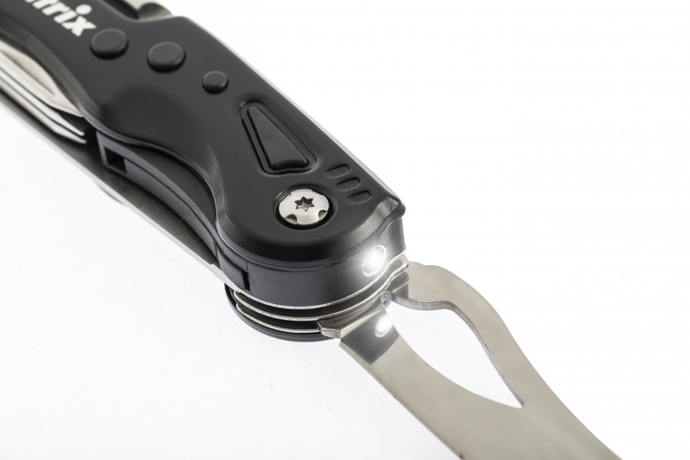 Многофункциональный нож Matrix 17625 длиной 107 мм, выполняющий 11 функций и поставляющийся с чехлом, — универсальный инструмент, который будет полезен дома, на даче и в гараже, а также в поездке, походе, на пикнике, рыбалке или охоте. Ножом можно резать различные материалы и продукты, пилой — срезать тонкие ветки, а шилом — проделывать отверстия. Открывалки удобно использовать для банок. Пилка для ногтей пригодится в быту.