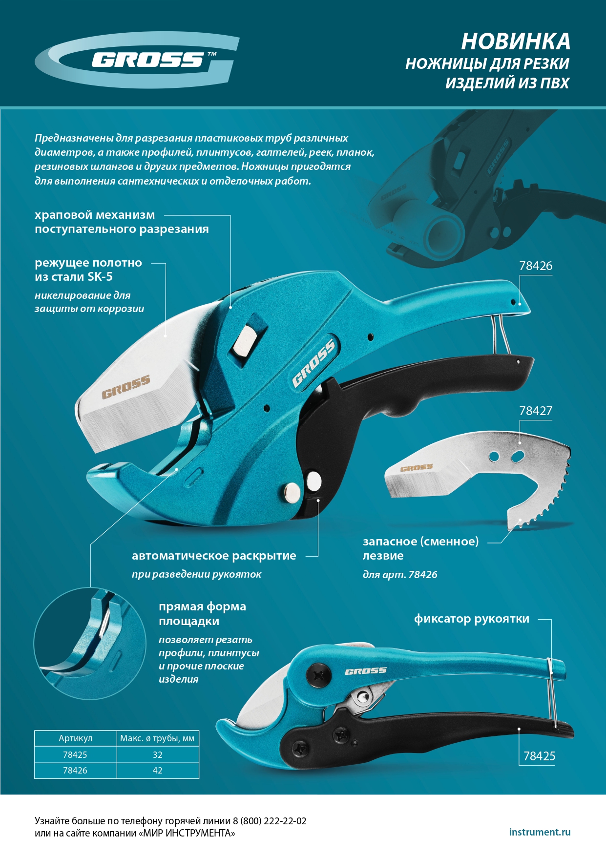 Ножницы для резки изделий из ПВХ, универсальные, D-42 мм, автомат Gross в Воронеже