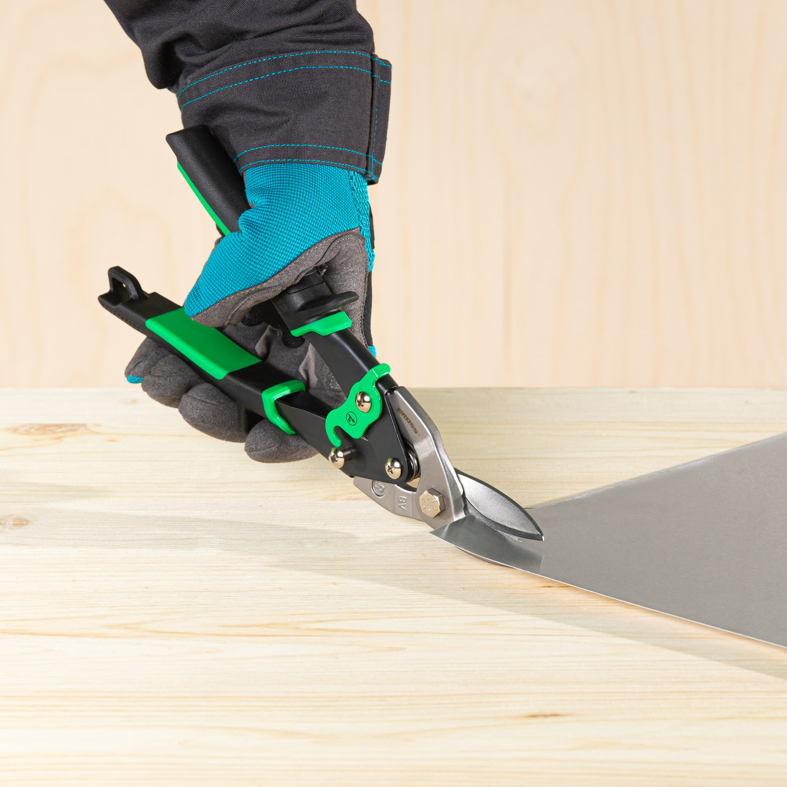 Ножницы по металлу Gross PIRANHA 78323 длиной 250 мм, из стали CrMo, с двухкомпонентными рукоятками, предназначены для прямого и правого реза по листовым заготовкам. Изогнутая рабочая часть облегчает выполнение длинных точных разрезов. Двойной рычажный механизм уменьшает нагрузку на руку при резке толстого металла. Ножницы справляются с холоднокатаной сталью толщиной до 1,2 мм и с нержавеющей сталью толщиной до 0,7 мм. Инструмент используется для проведения профессиональных слесарных работ.