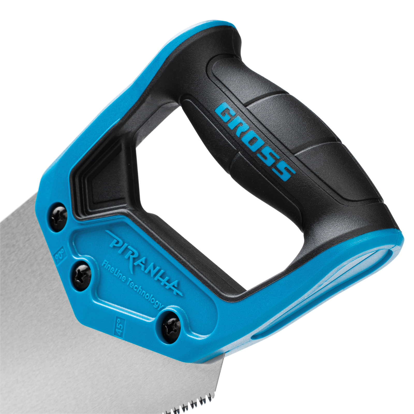 Ножовка по дереву Gross PIRANHA 24103 с полотном длиной 450 мм, калеными зубьями с 3D-заточкой и шагом 11-12 TPI, 2-компонентной рукояткой, предназначена для распиловки заготовок из древесины, ДСП, ДВП, МДФ и ламината, а также из пластических материалов, таких как пенополистирол и полиуретан. Может производить продольный и поперечный распил. Мелкие зубья с шагом 11-12 TPI позволяют выполнять точный и чистый рез. Ножовка обладает высокой производительностью благодаря трехгранной заточке зубьев. Инструмент используется в столярном деле.