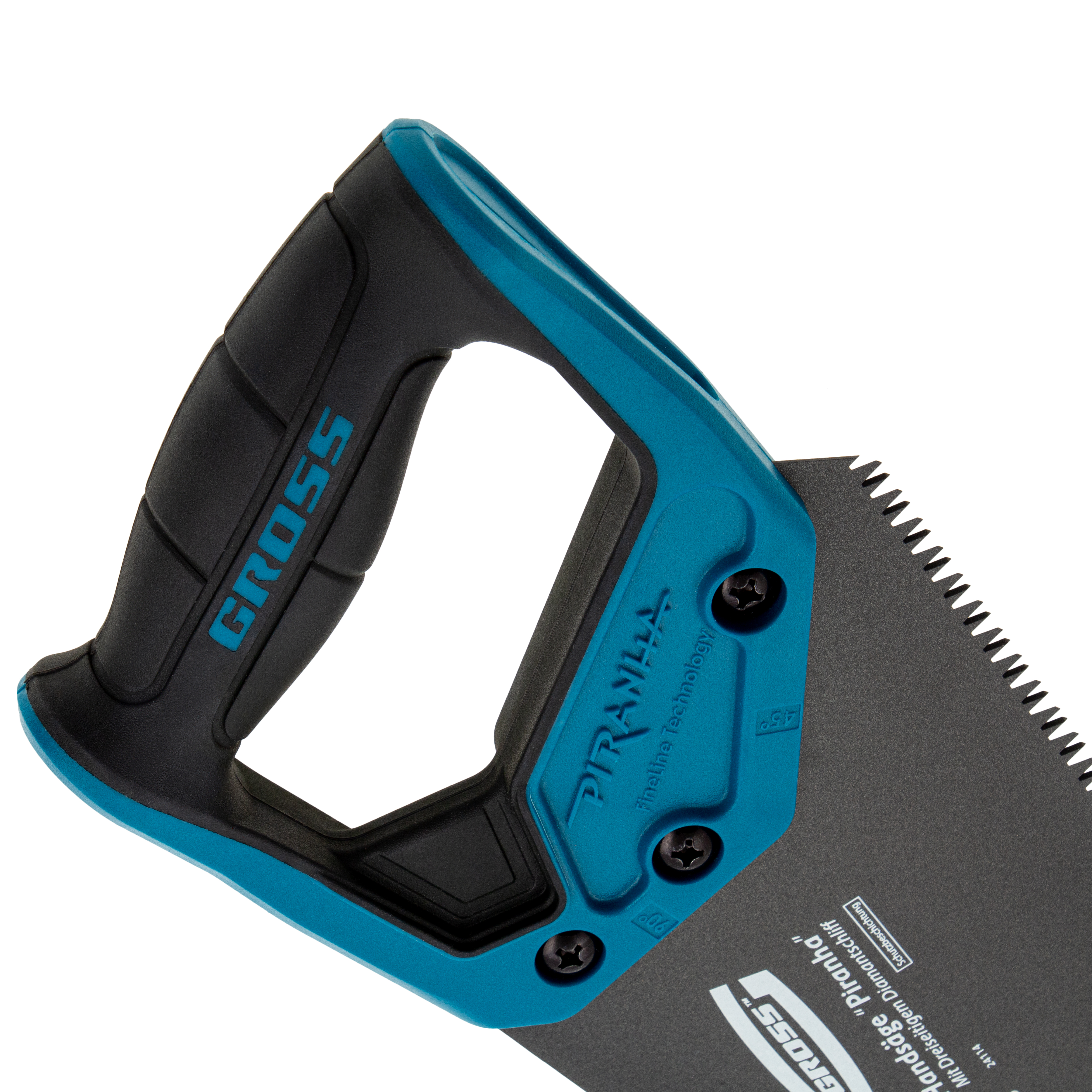 Ножовка по дереву Gross PIRANHA 24114 с полотном длиной 450 мм, калеными зубьями с 3D-заточкой и шагом 7 TPI, с тефлоновым покрытием полотна и 2-компонентной рукояткой, используется для продольного и поперечного распиливания древесины различных пород, МДФ, ДСП, ДВП, ламината, а также пенополистирола, полиуретана и других синтетических материалов. Рабочая часть состоит из крупных зубьев, поэтому ножовка подходит для решения широкого спектра задач. Трехгранная заточка зубьев увеличивает производительность инструмента без потери качества распиловки. Ножовка предназначена для столярных работ.