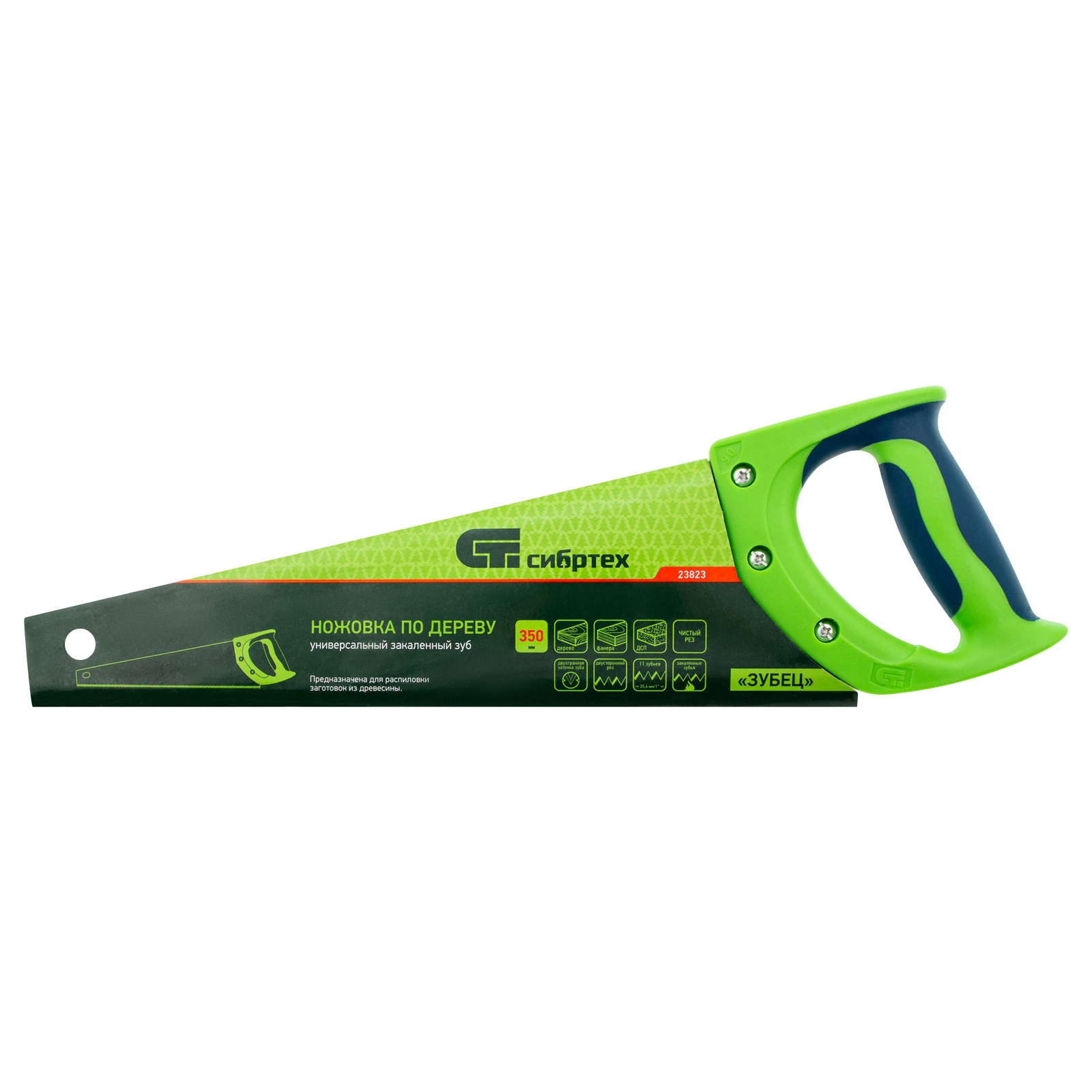 Ножовка по дереву Сибртех «Зубец» 23823 с полотном длиной 350 мм, калеными зубьями с 2D-заточкой и шагом 11 TPI, 2-компонентной рукояткой, используется для распиливания заготовок из древесины, фанеры и ДСП. Рабочая часть, содержащая 11 зубьев на дюйм, обеспечивает чистый двусторонний рез. Режущую кромку можно перетачивать. Ножовка будет полезна столярам, плотникам и домашним мастерам.