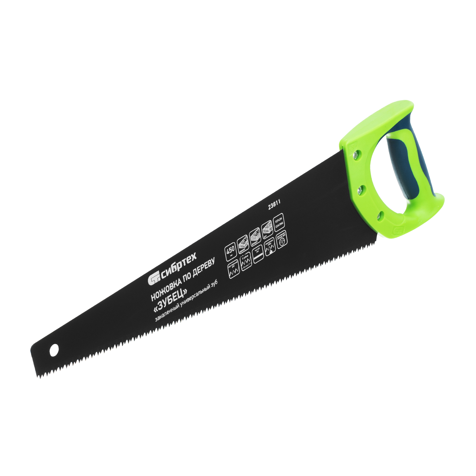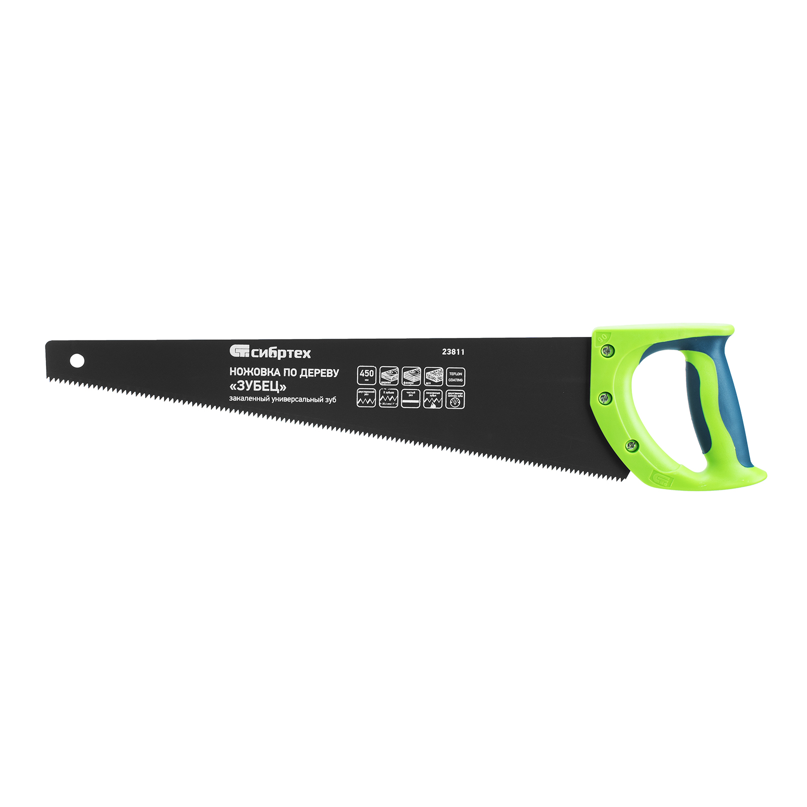 - Высокий ресурс — зубья прошли закалку до необходимой твердости, тефлоновое покрытие защищает полотно от коррозии.