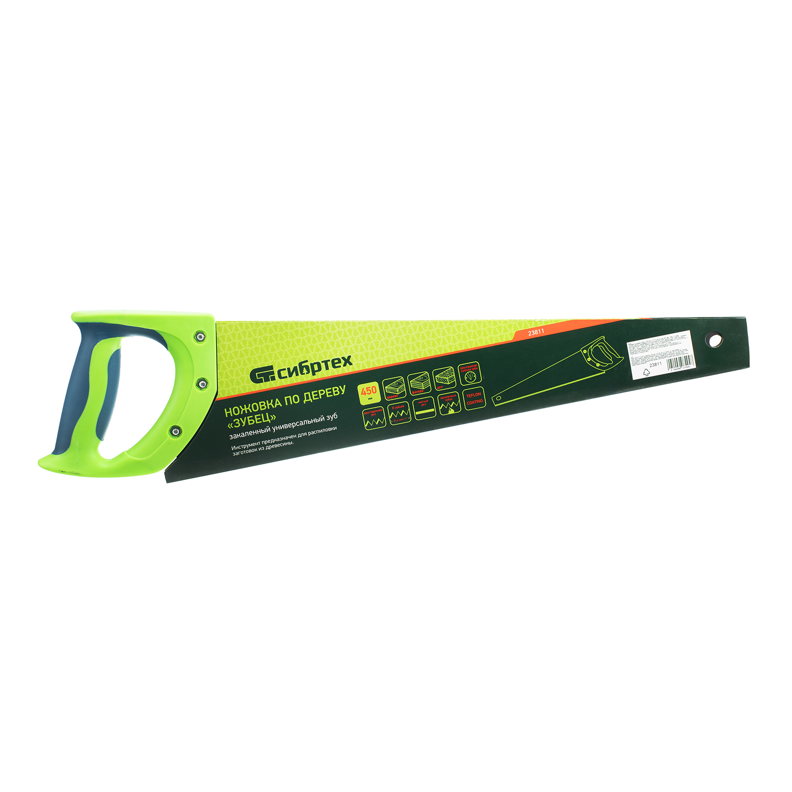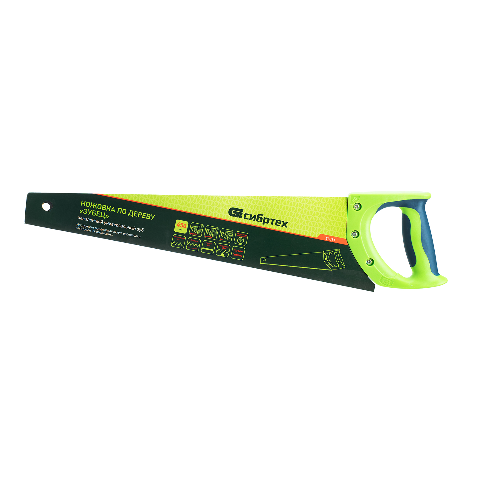 Ножовка по дереву Сибртех «Зубец» 23811 с полотном длиной 450 мм, с калеными зубьями с 2D-заточкой и шагом 7-8 TPI, с защитным покрытием и двухкомпонентной рукояткой, используется для продольного и поперечного распила заготовок из древесины, фанеры и ДСП. Подходит для двустороннего реза. Зубья с универсальным шагом 7-8 TPI обеспечивают оптимальную скорость и качество распиловки. Если режущая кромка затупится, ее можно будет заточить. Ножовка будет полезна в столярной мастерской, а также дома или на даче.