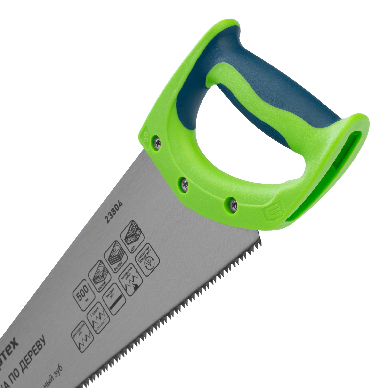 Ножовка по дереву Сибртех «Зубец» 23804 с полотном длиной 500 мм, калеными зубьями с 2D-заточкой и шагом 7-8 TPI, с двухкомпонентной рукояткой, используется для распиливания заготовок из древесины, фанеры и ДСП. Рабочая часть, содержащая 7-8 зубьев на дюйм, обеспечивает быстрый двусторонний рез. Режущую кромку можно перетачивать при необходимости. Ножовка будет полезна столяру, плотнику и домашнему мастеру.